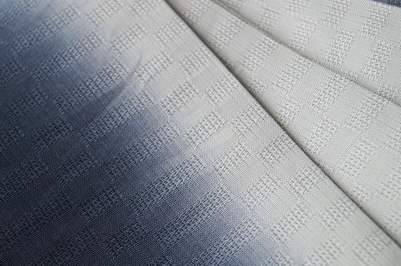 ぼかしが美しく、晒した麻生地を染色して