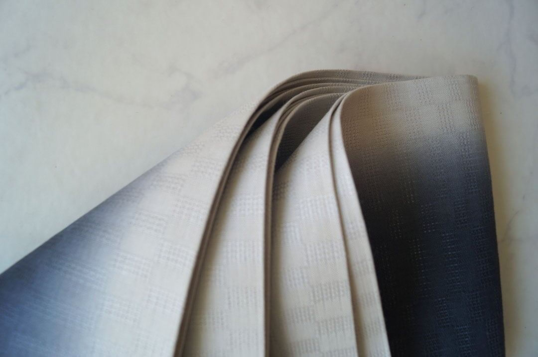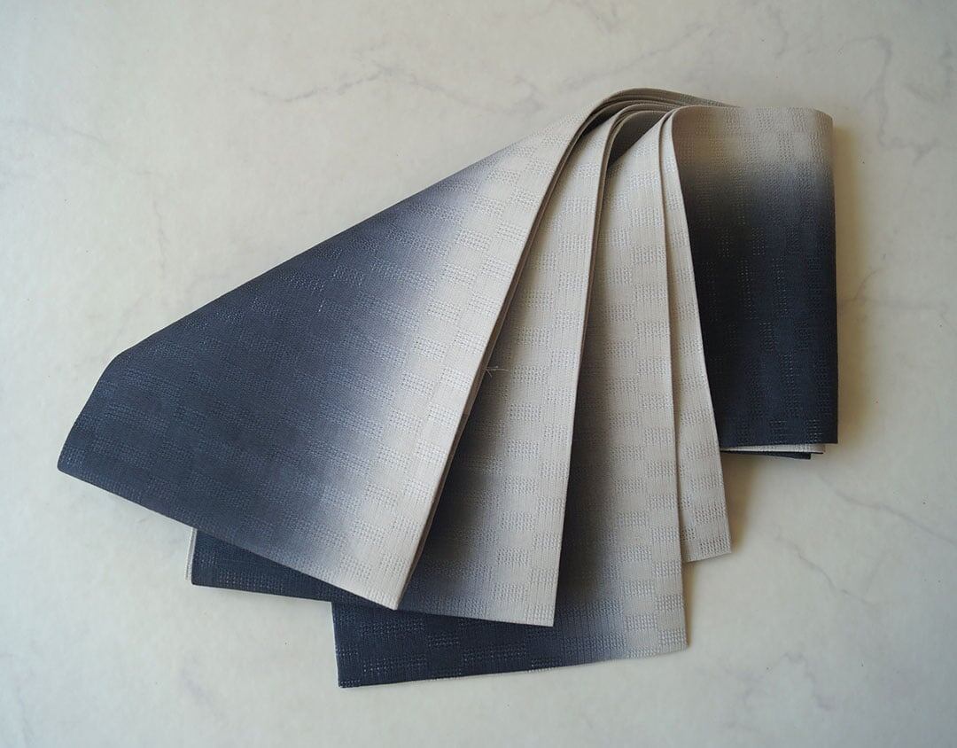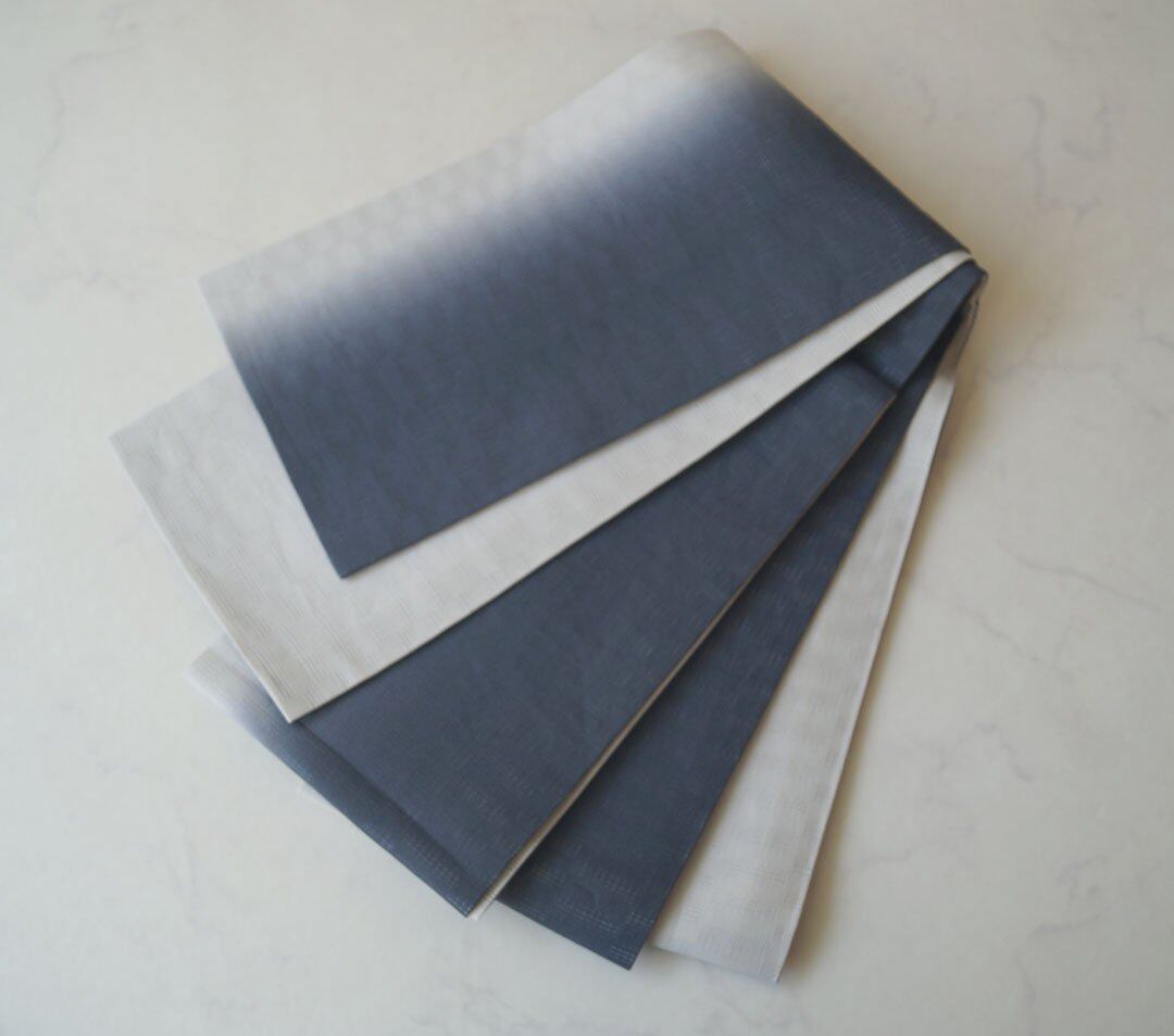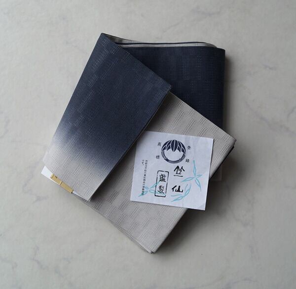 【竺仙・半巾帯】麻市松 グレーぼかし 半巾帯_1
