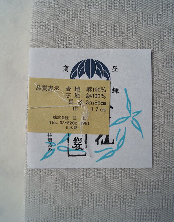 日本橋・竺仙さんの麻の半巾帯です。