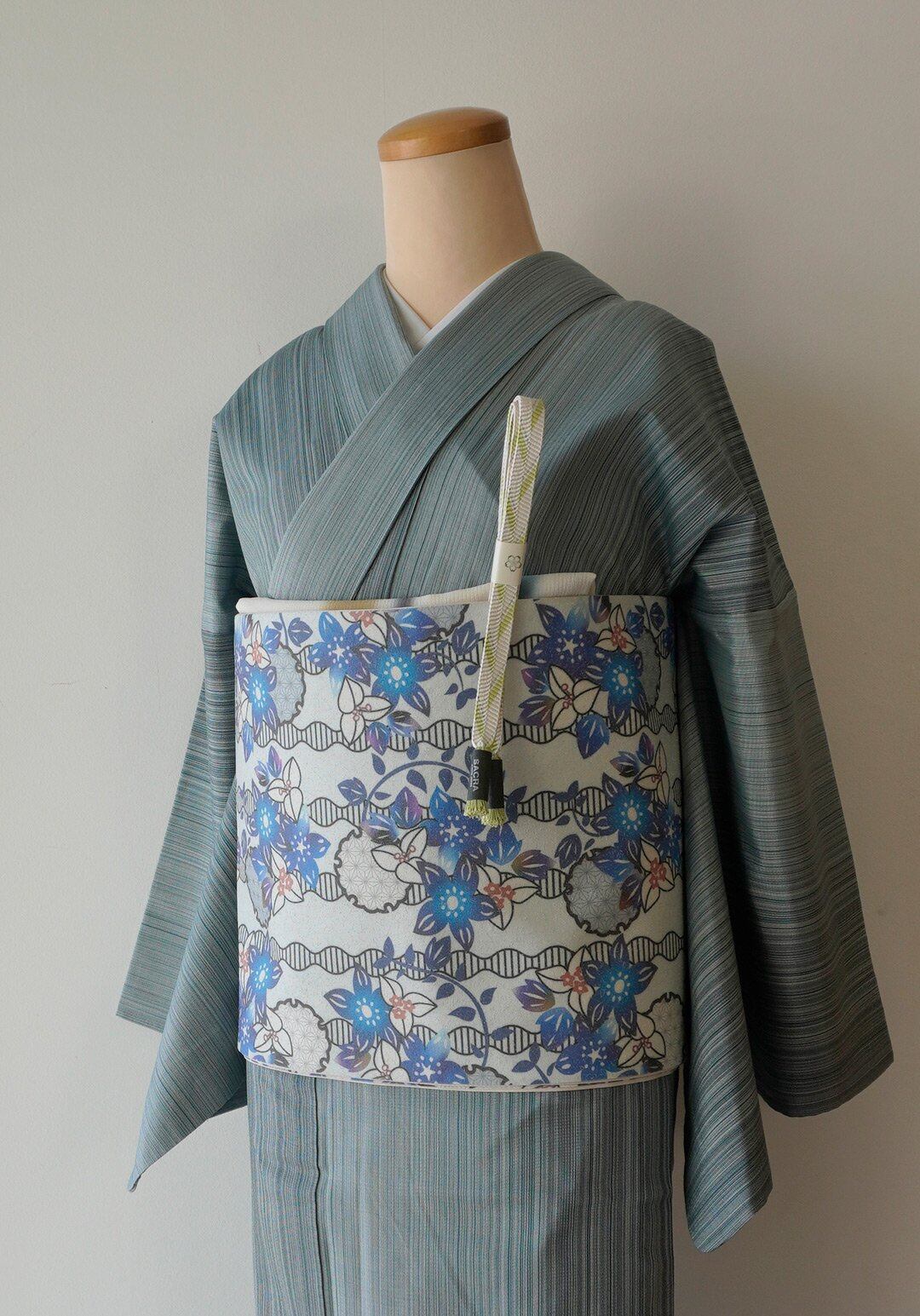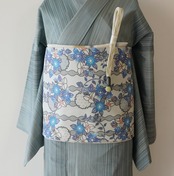 よく見ると帯地には横糸部分に細い銀糸で