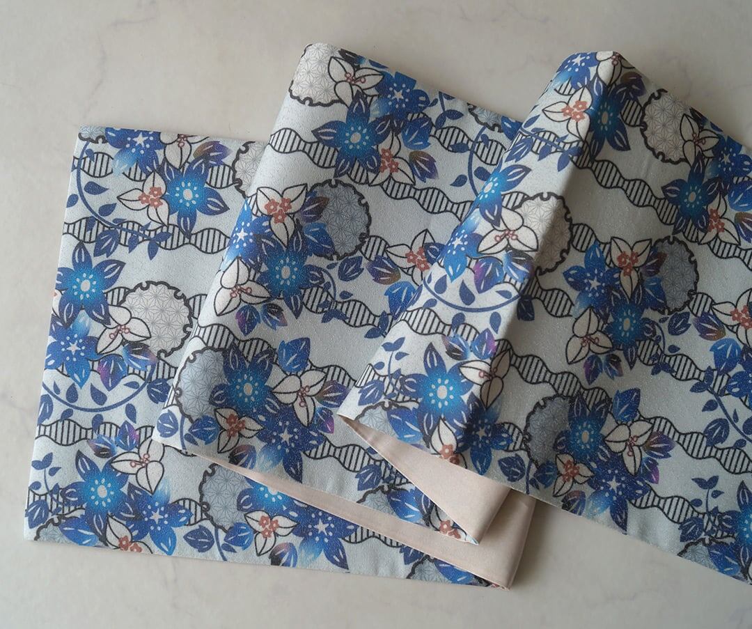 【ふくろ帯】紅型風文様 全通ふくろ帯