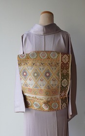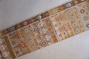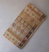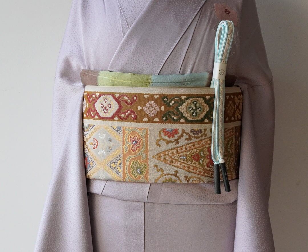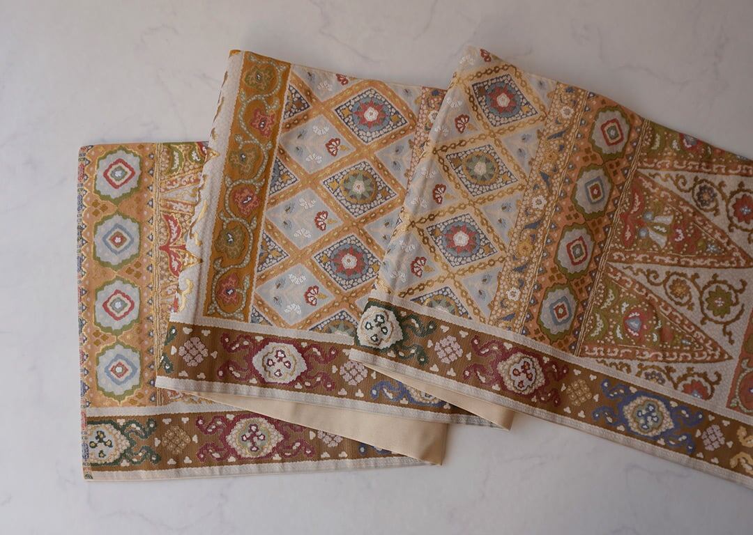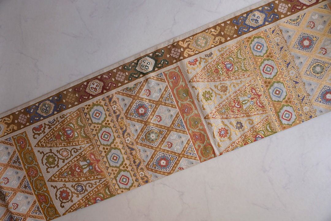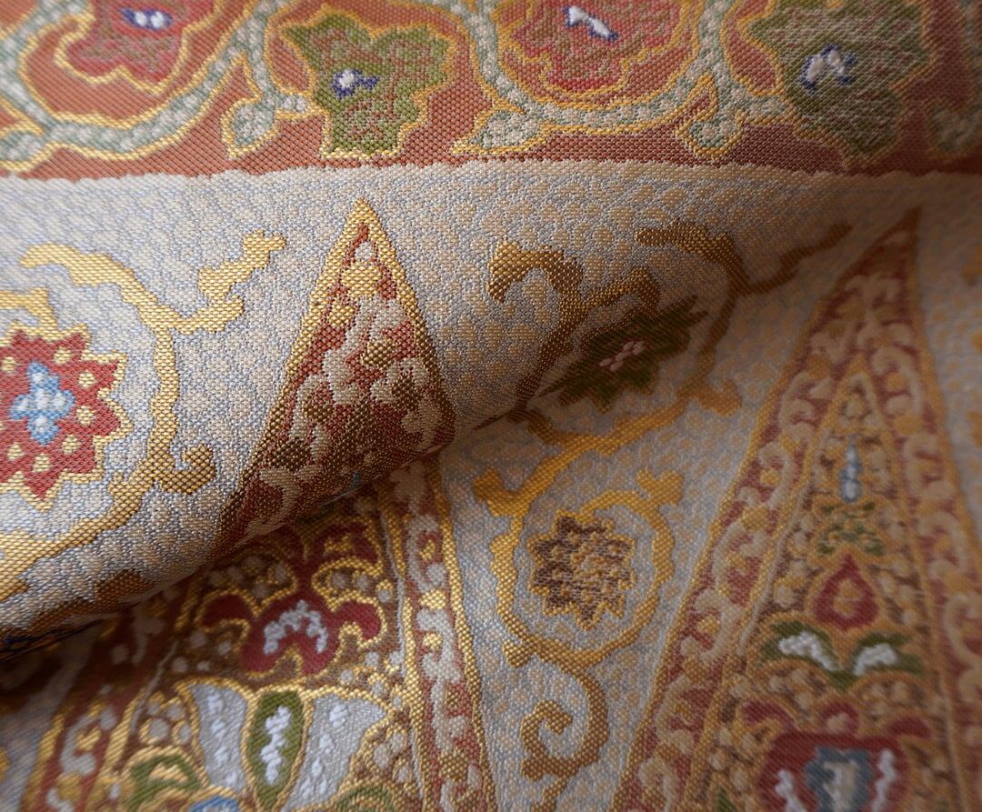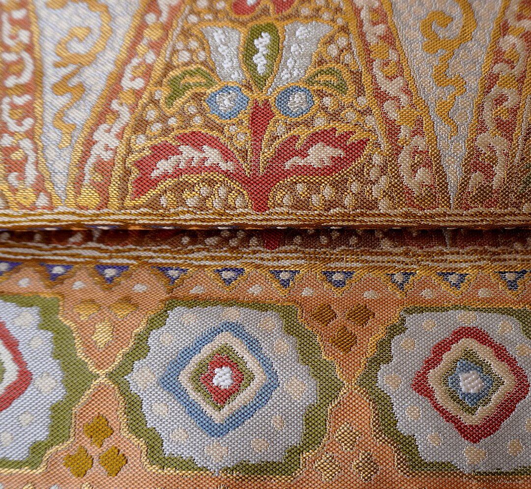 様々な文様が全面に織り出されたふくろ帯。