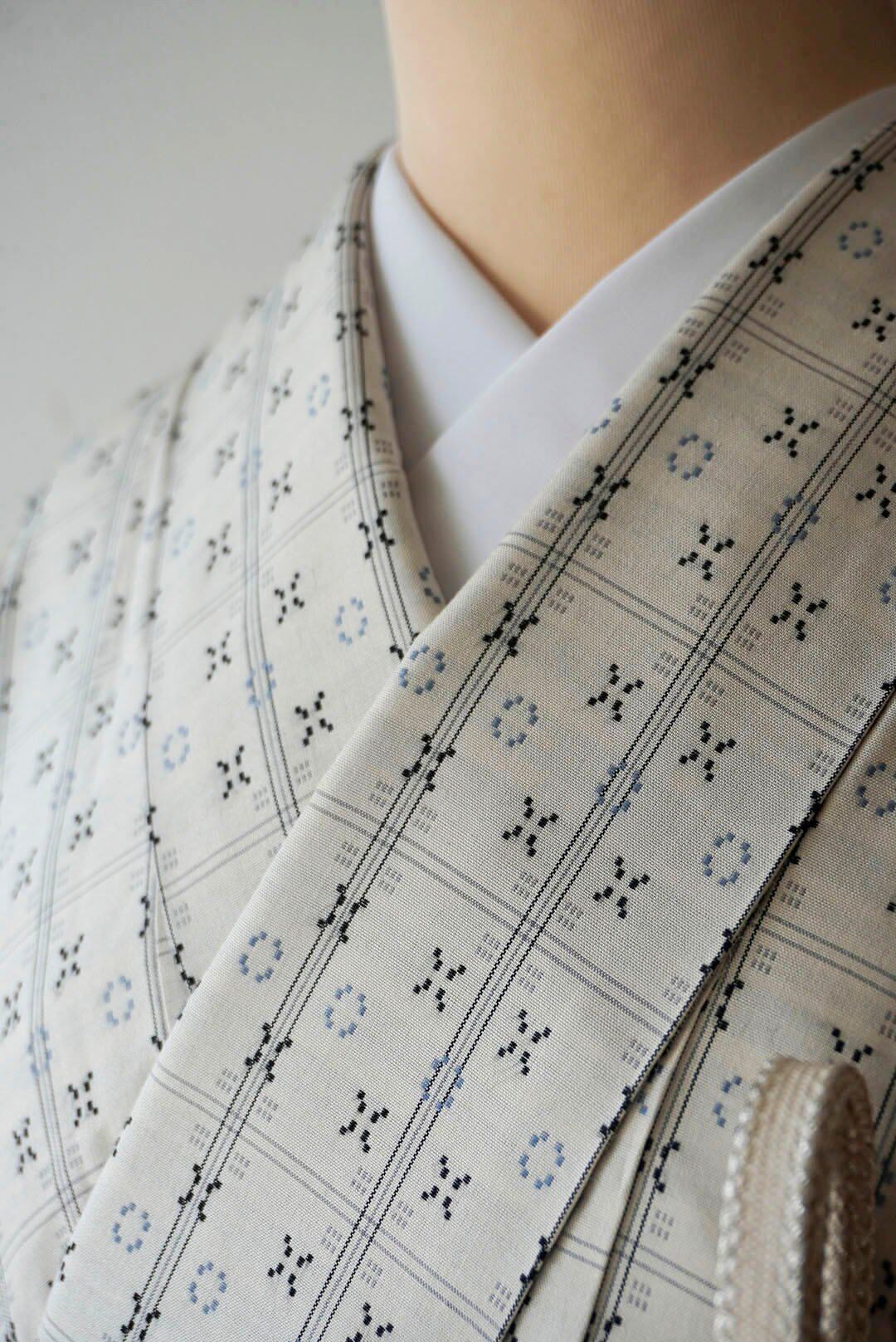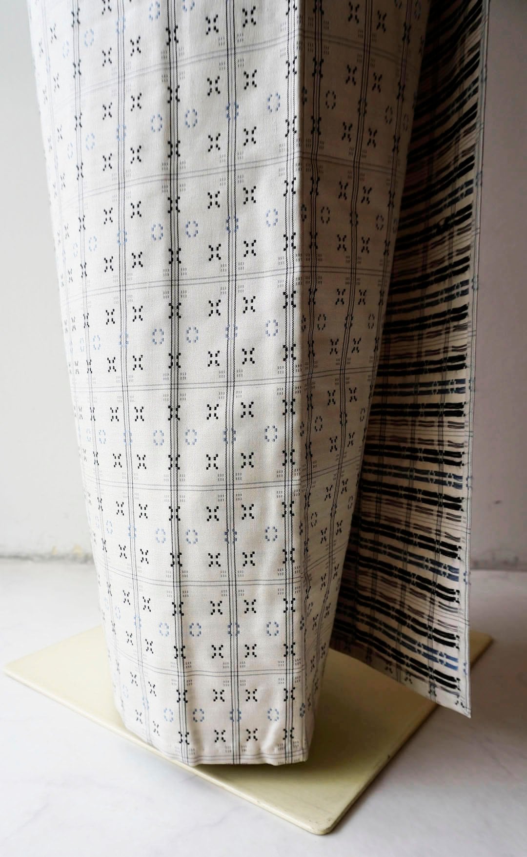 濃紺色とくすみブルー、淡いグレーの織り文様が