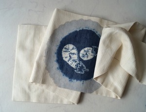 【夏・なごや帯】生成り色 丸に茄子文 なごや帯