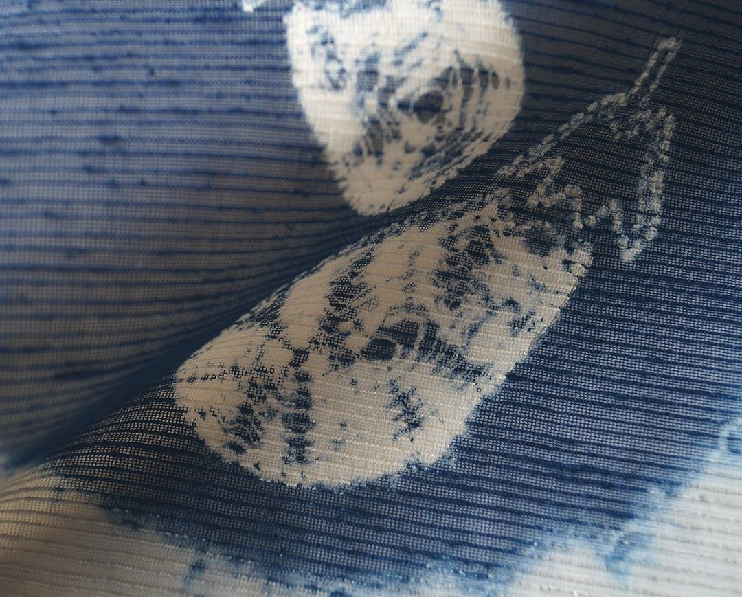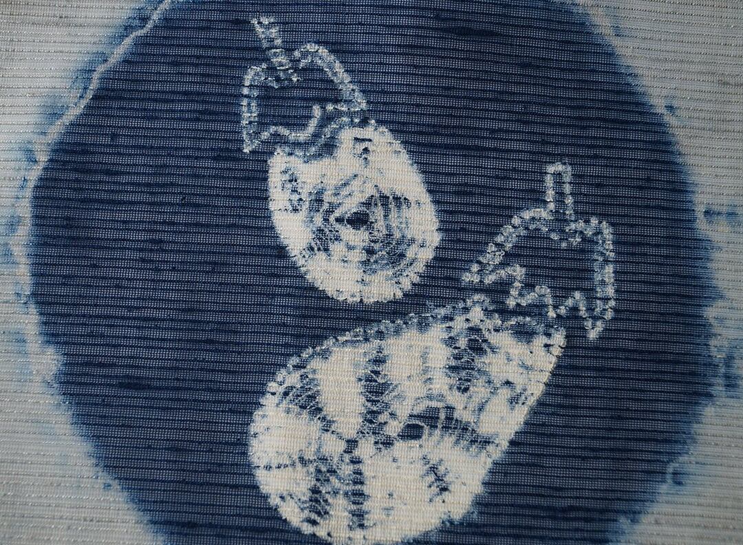 紺の絞り染めが施された