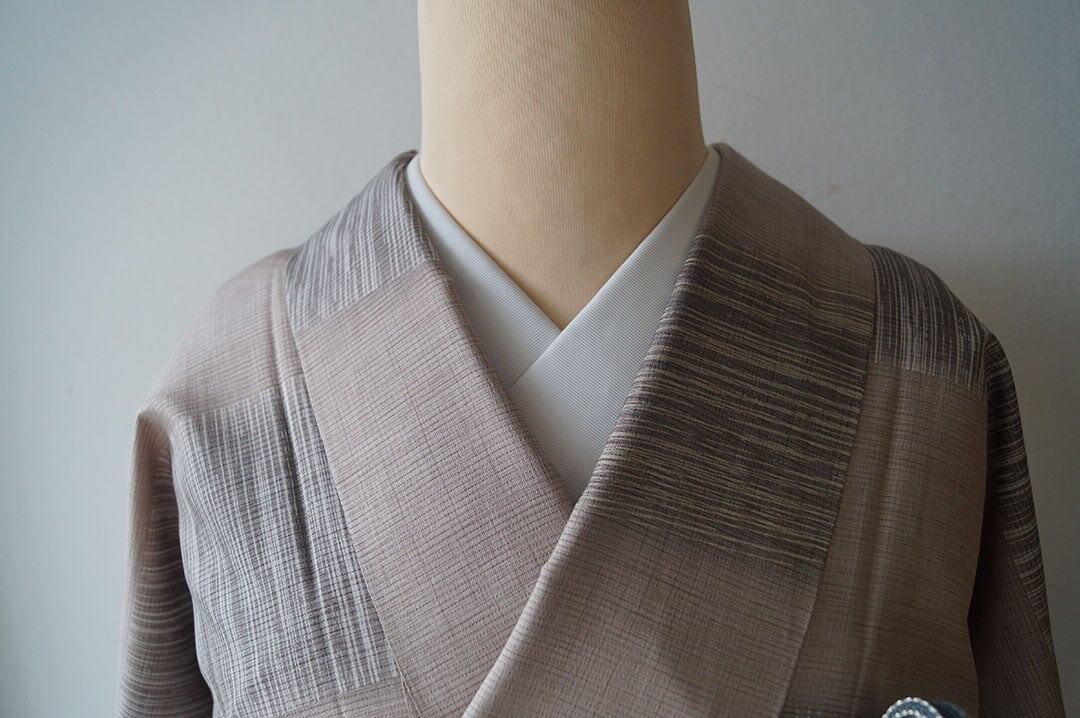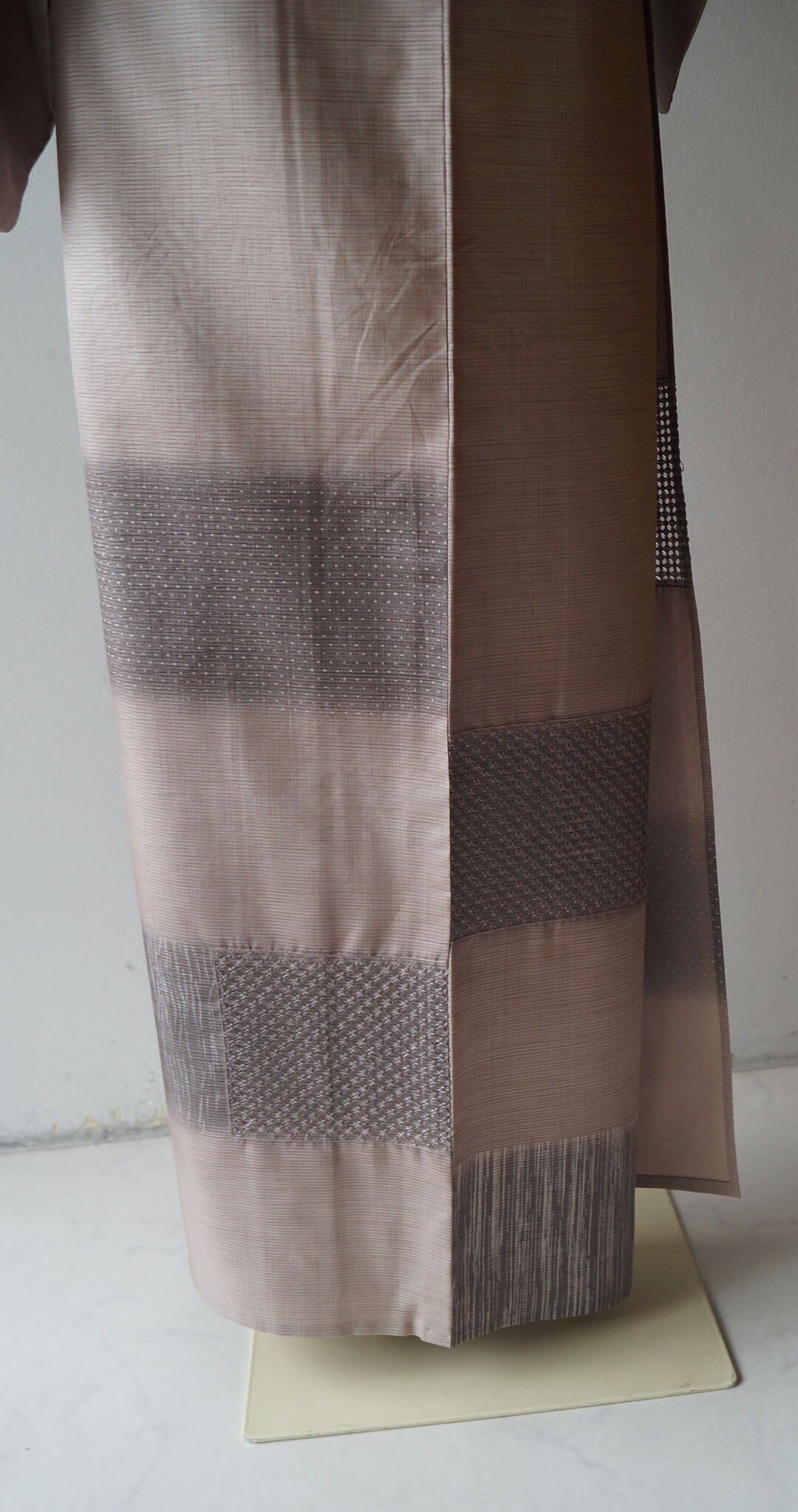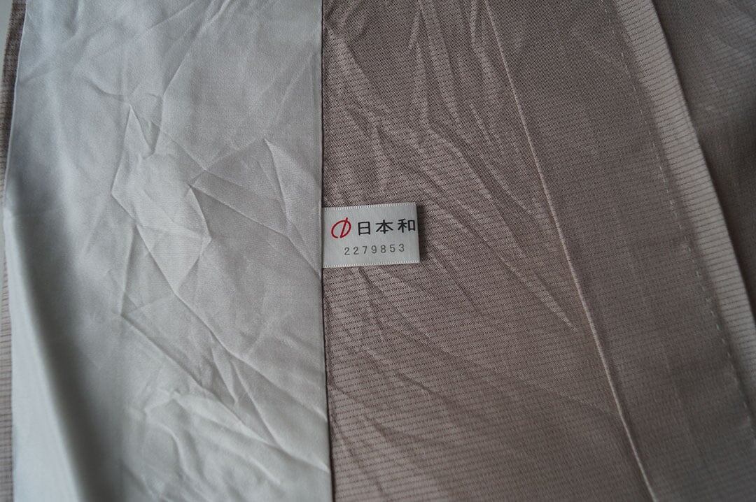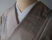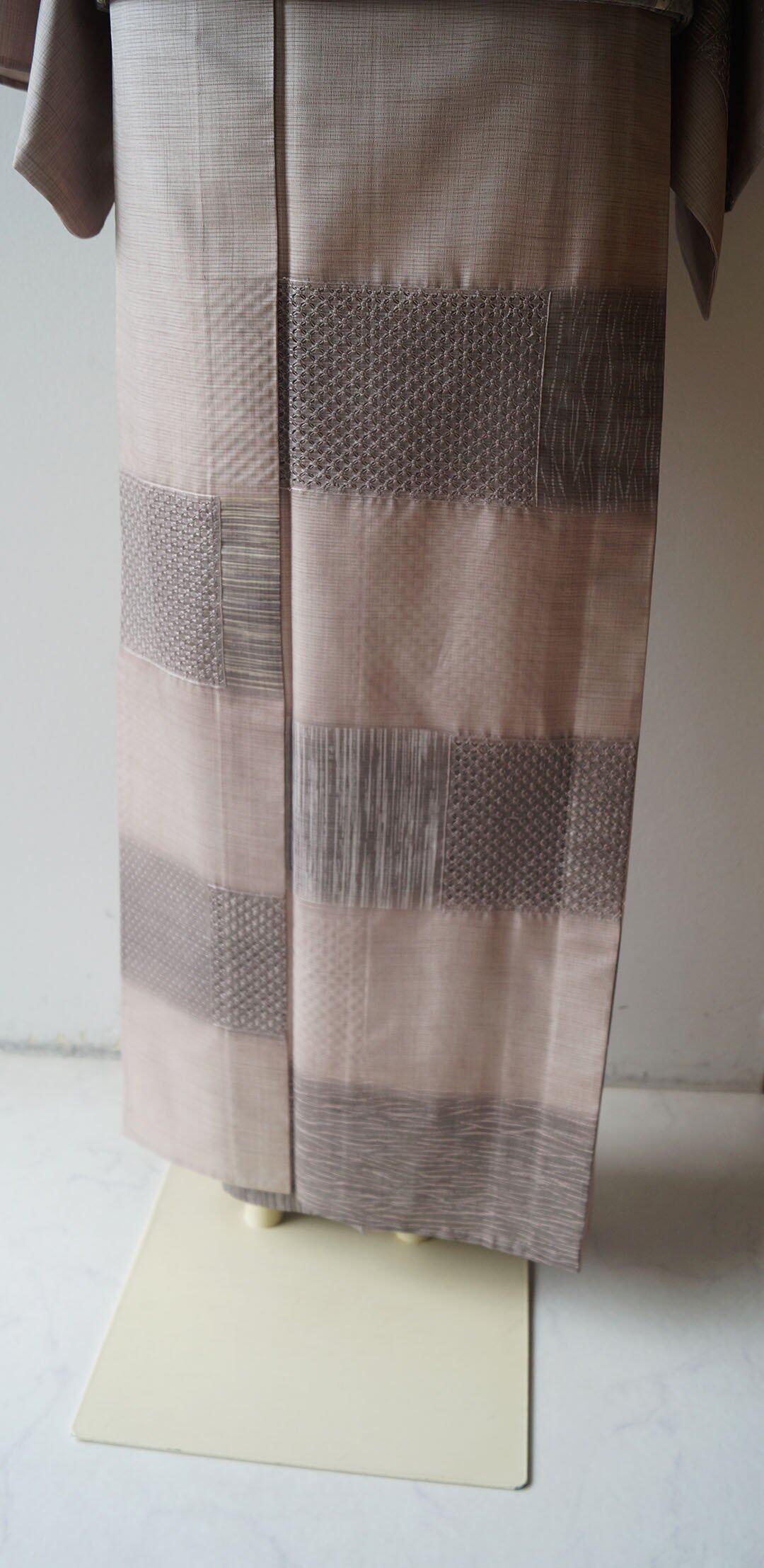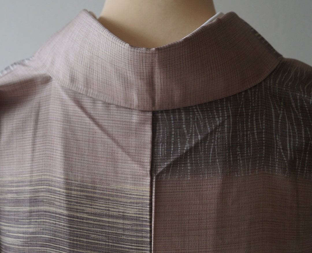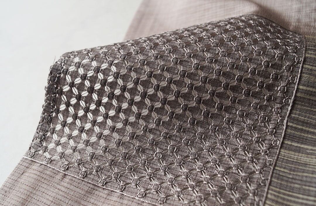 【単衣】鳩羽鼠色 汕頭刺繍 本場縞大島紬 附下 証紙あり