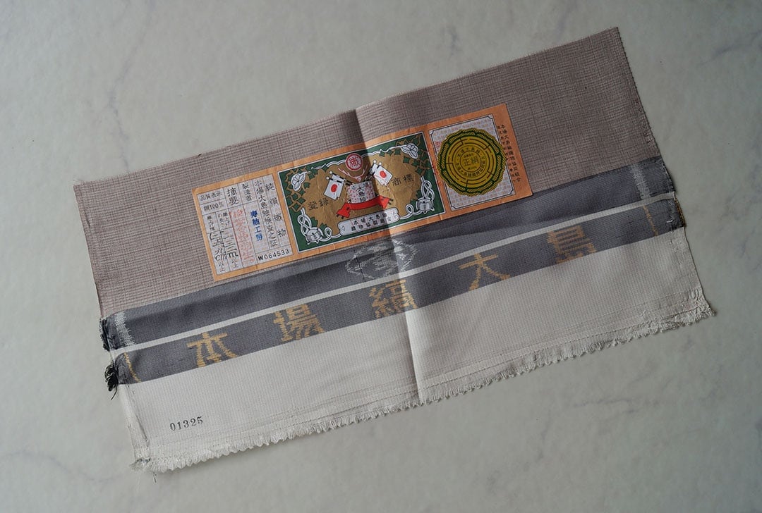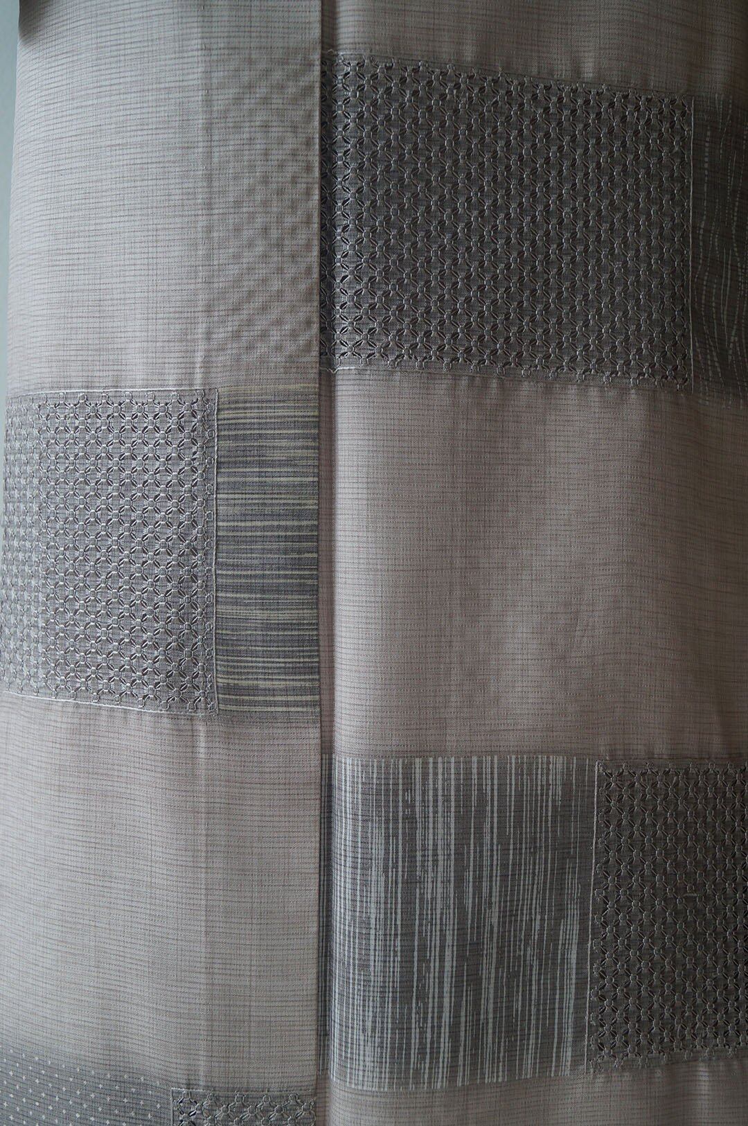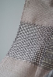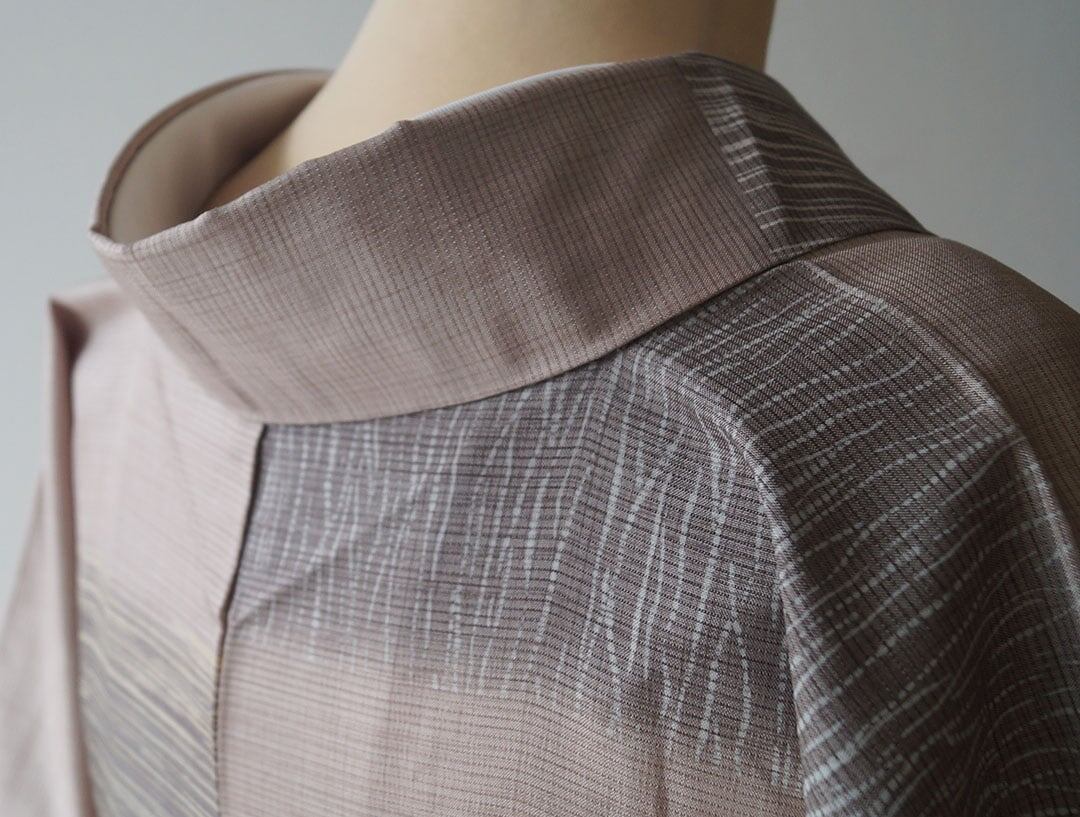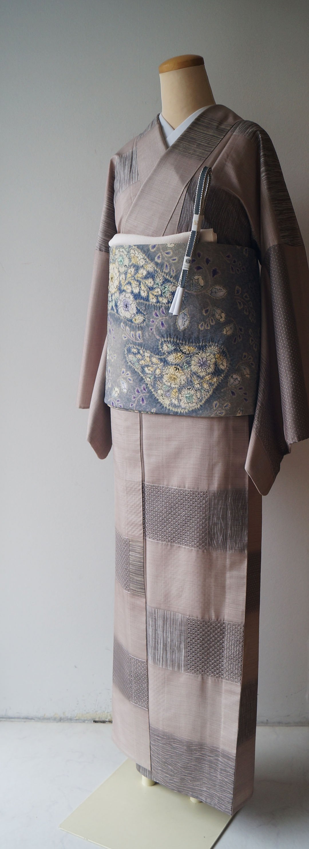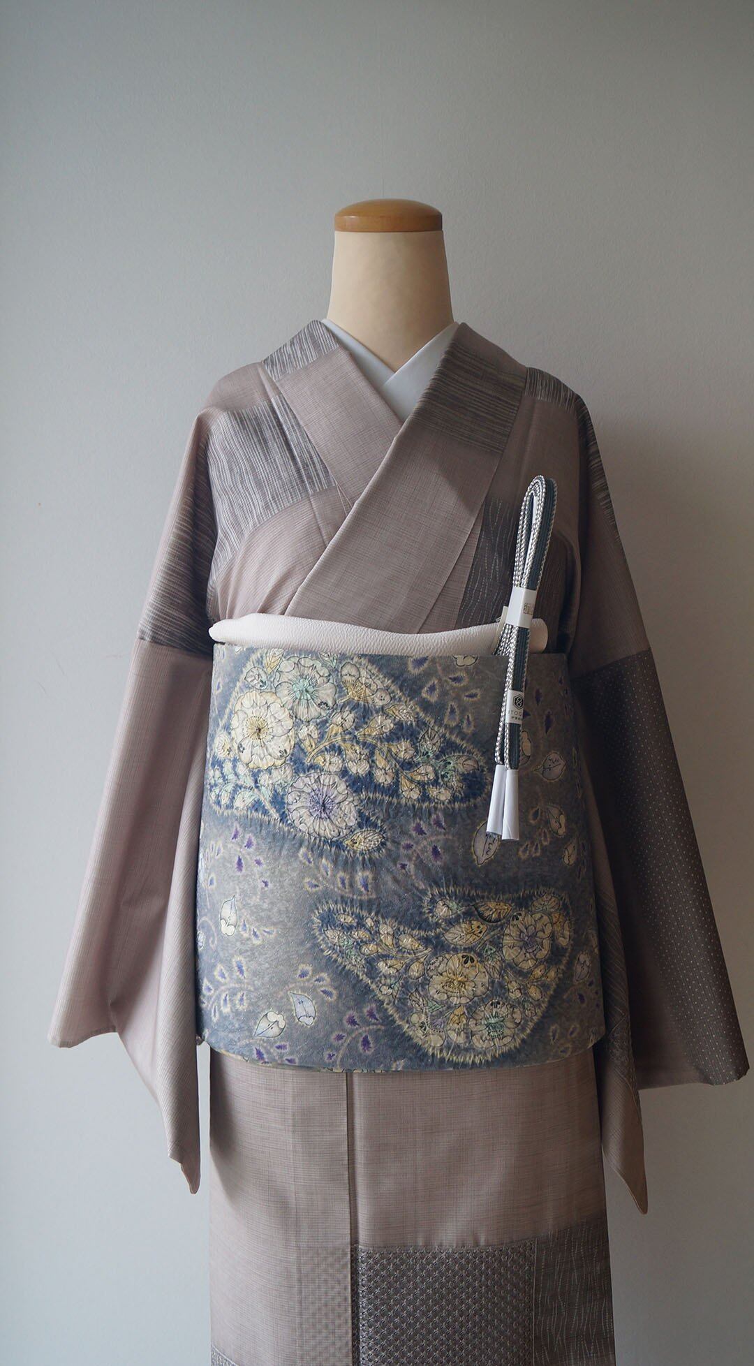 【単衣】鳩羽鼠色 汕頭刺繍 本場縞大島紬 附下 証紙あり