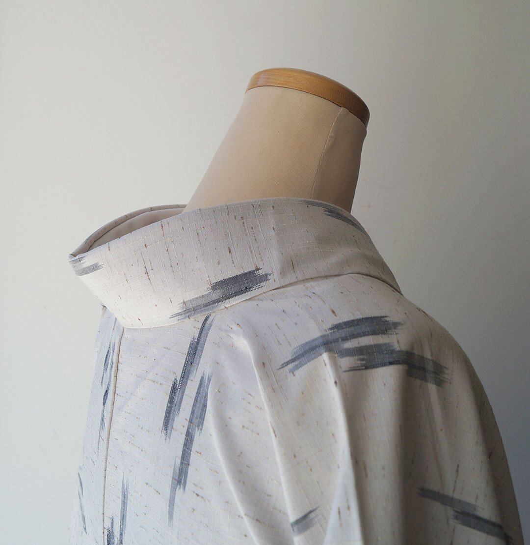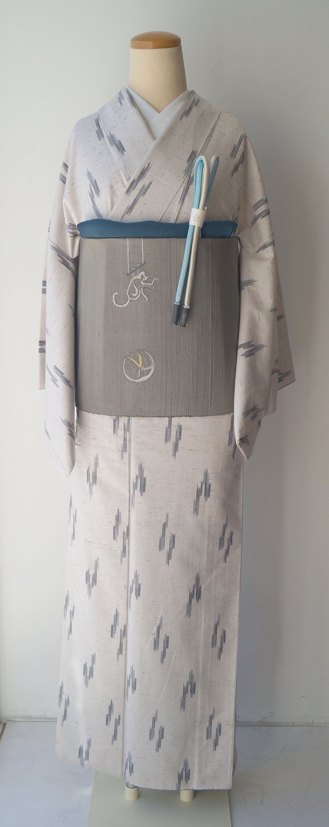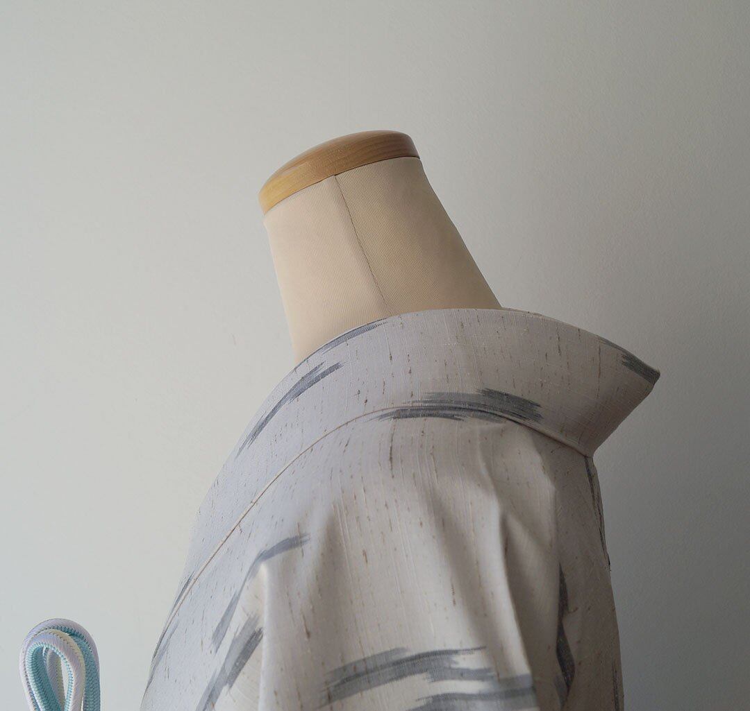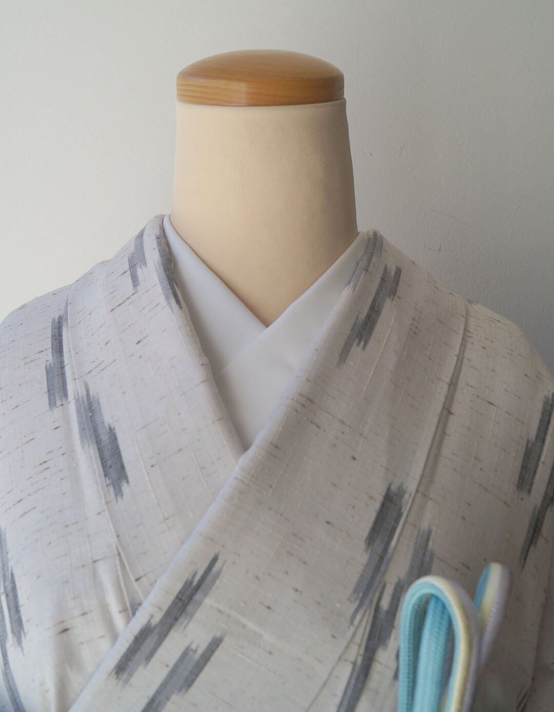 【袷】スノーホワイト色 絣文 ぜんまい紬 証なし