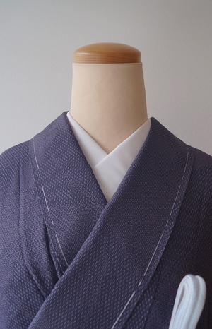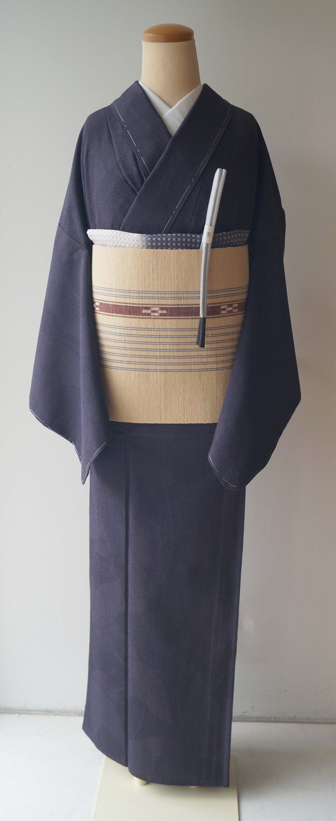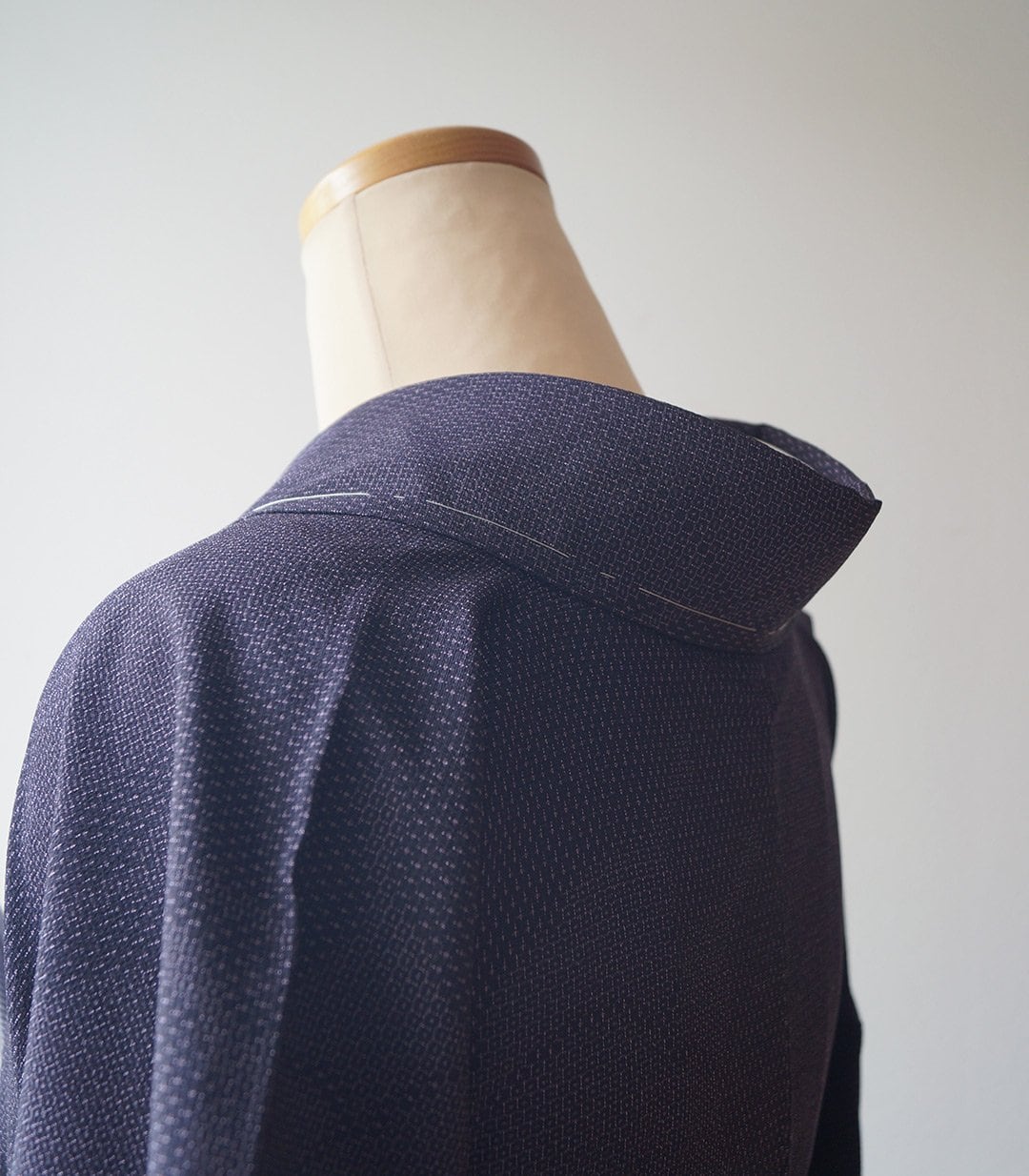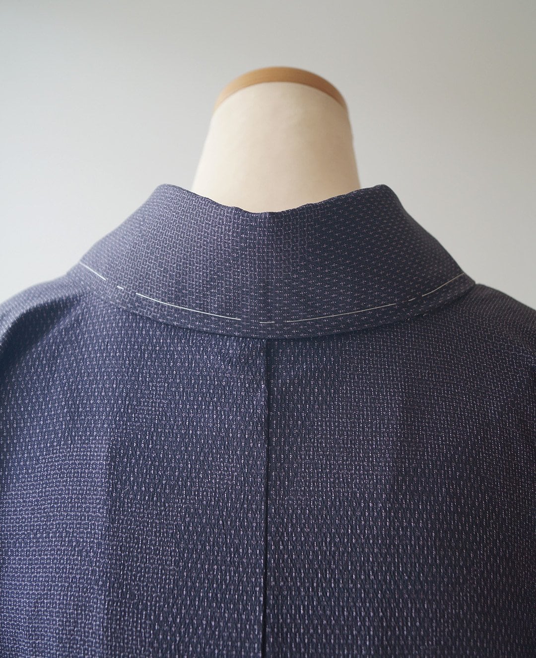 【単衣】藍鉄色地 蚊絣亀甲 蝶文 本塩沢 やまだ織証紙付き