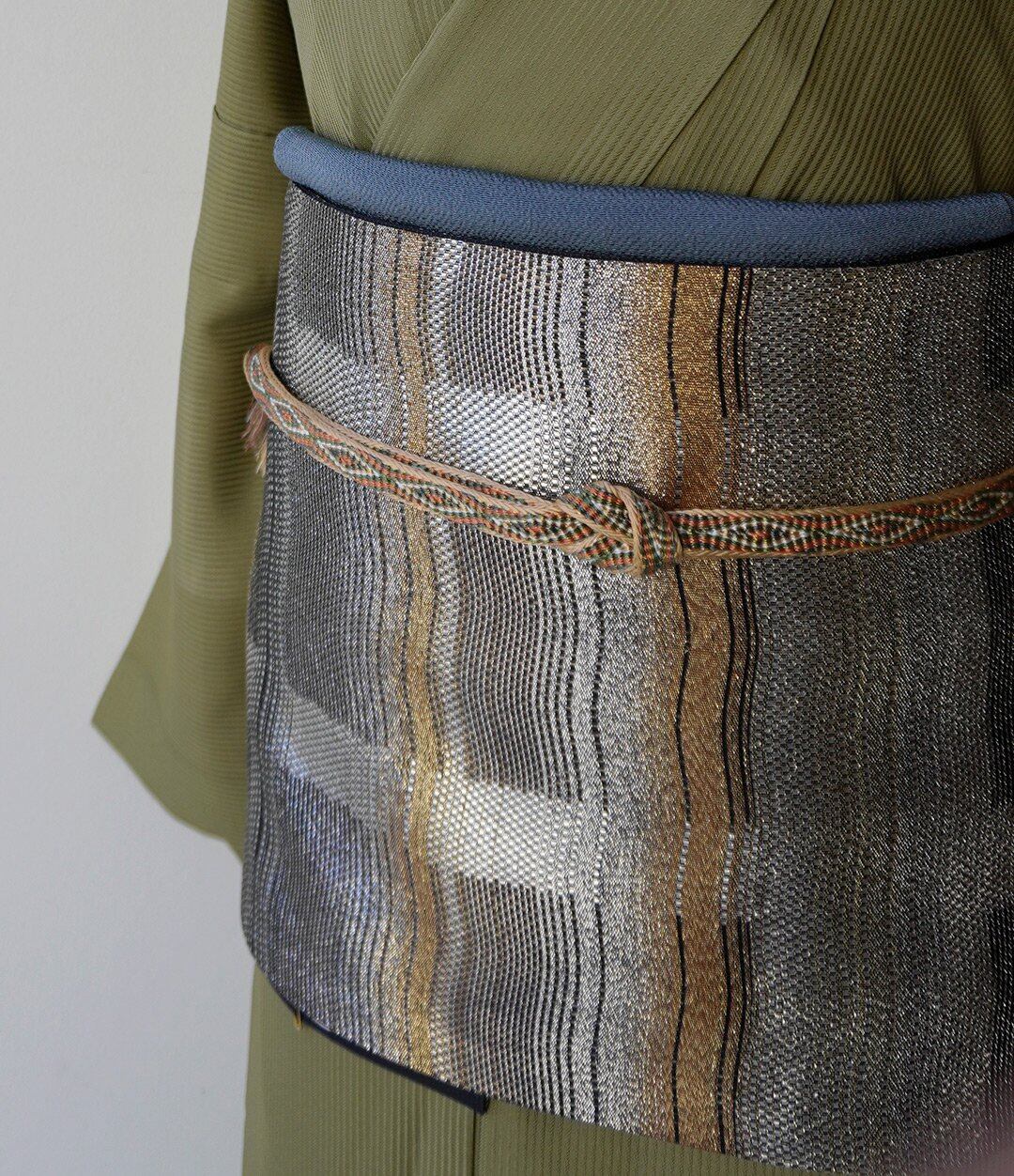 【ふくろ帯】金銀黒 変わり格子 ふくろ帯