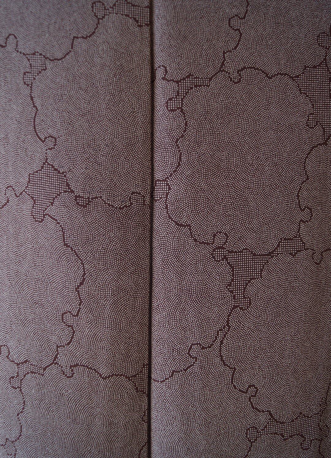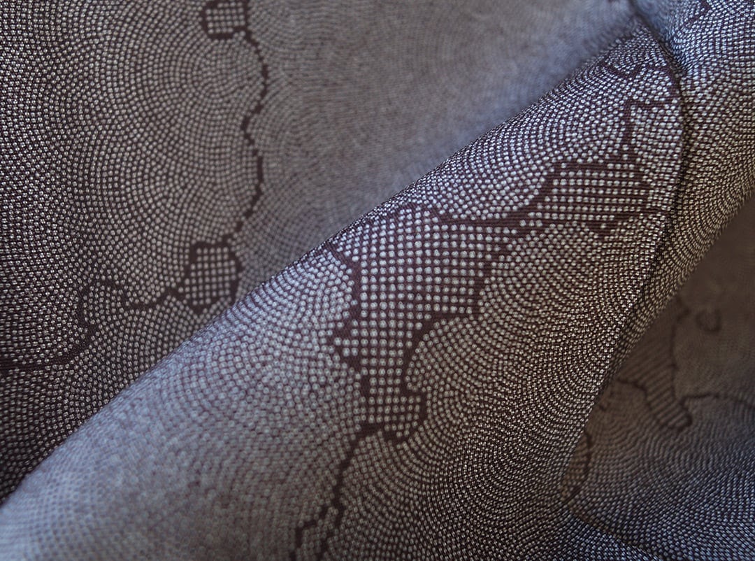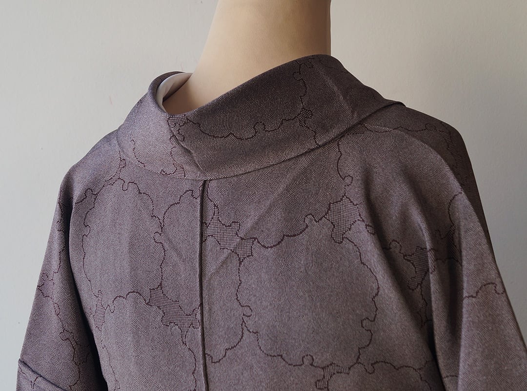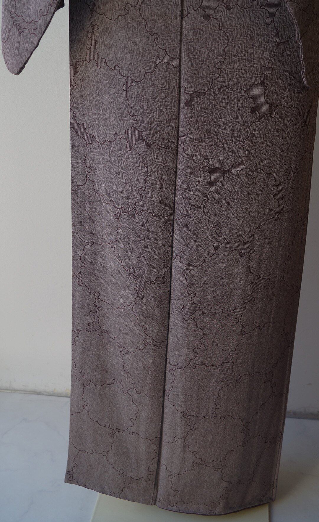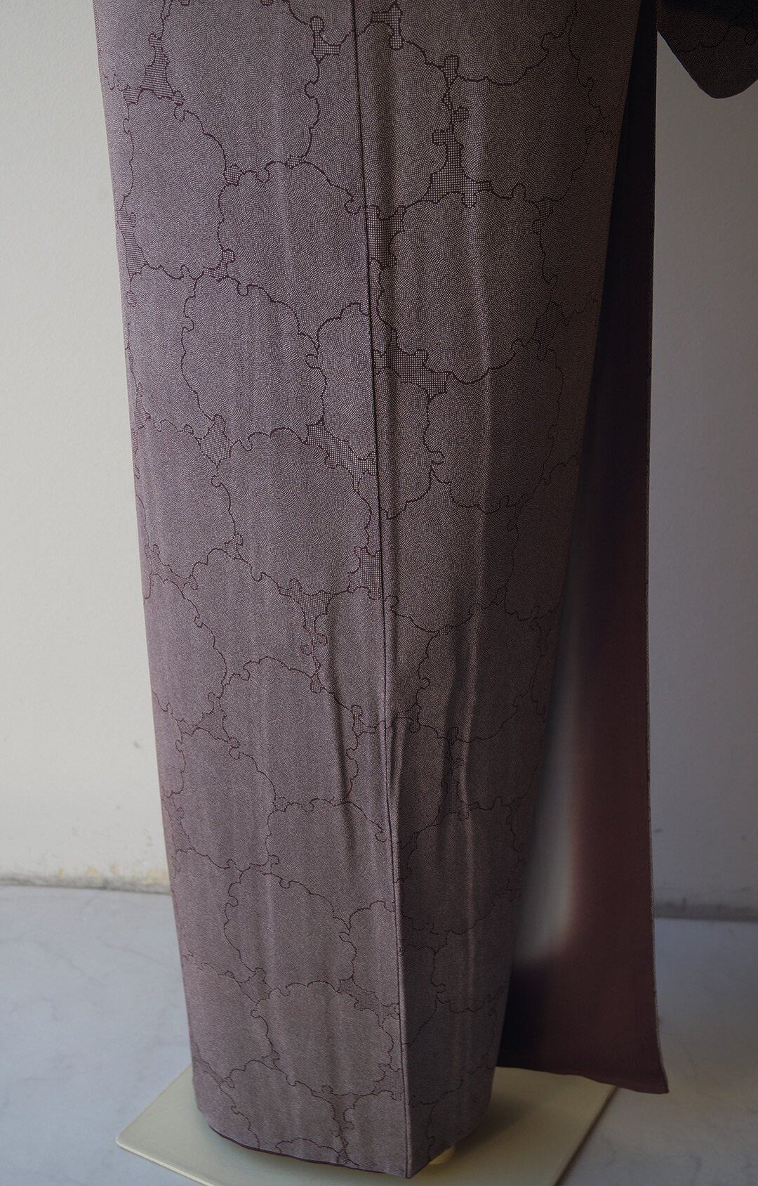 【袷】保科信 作 黒鳶色×鳩羽鼠色 雪輪文 江戸小紋