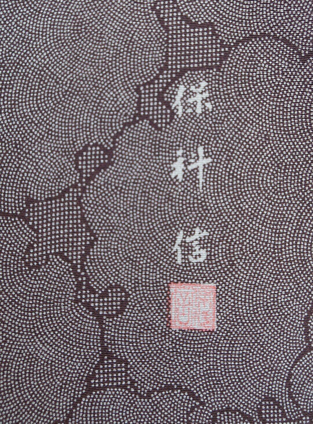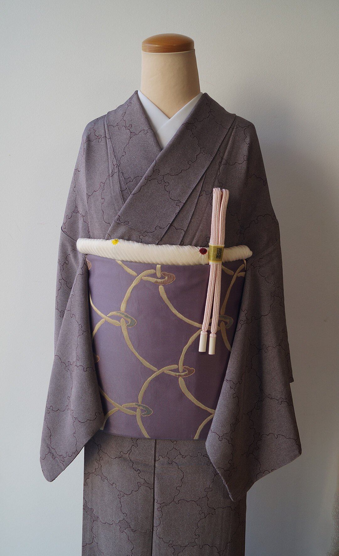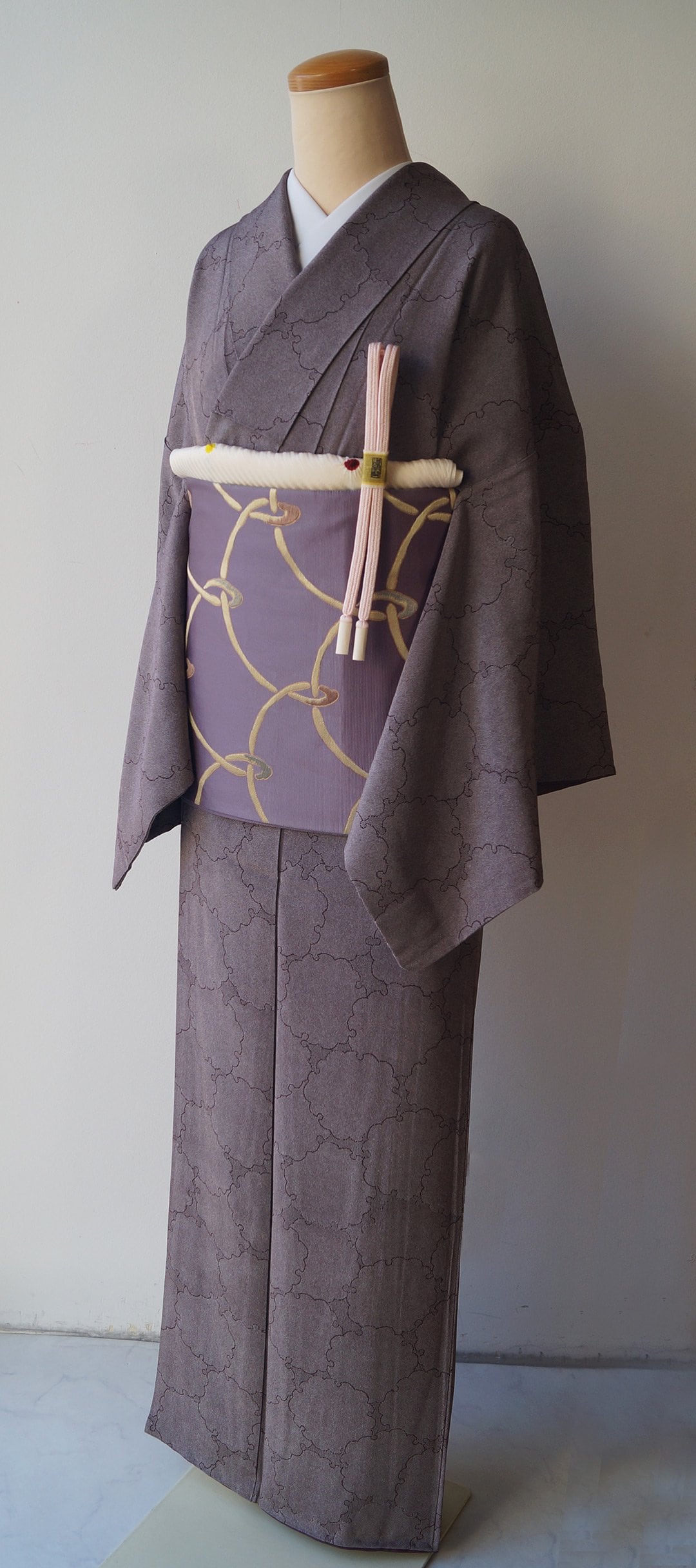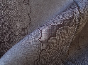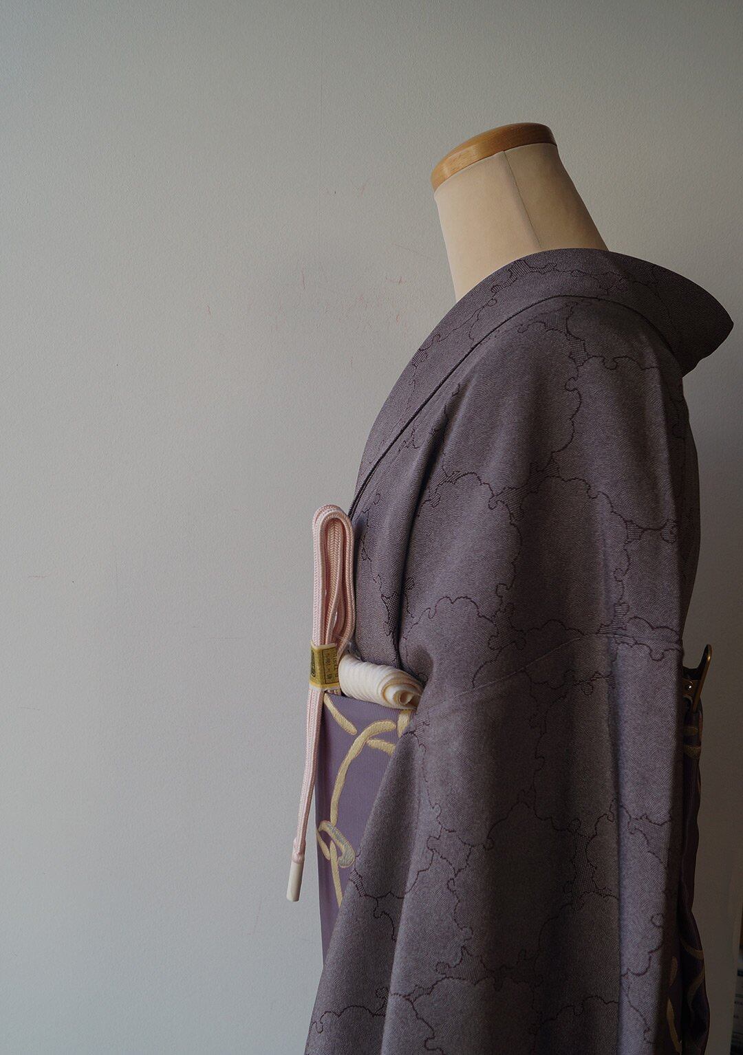 【袷】保科信 作 黒鳶色×鳩羽鼠色 雪輪文 江戸小紋