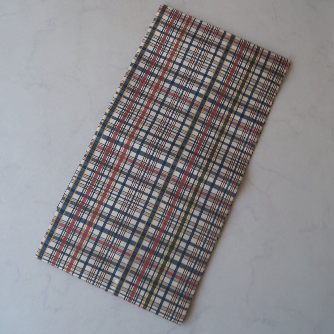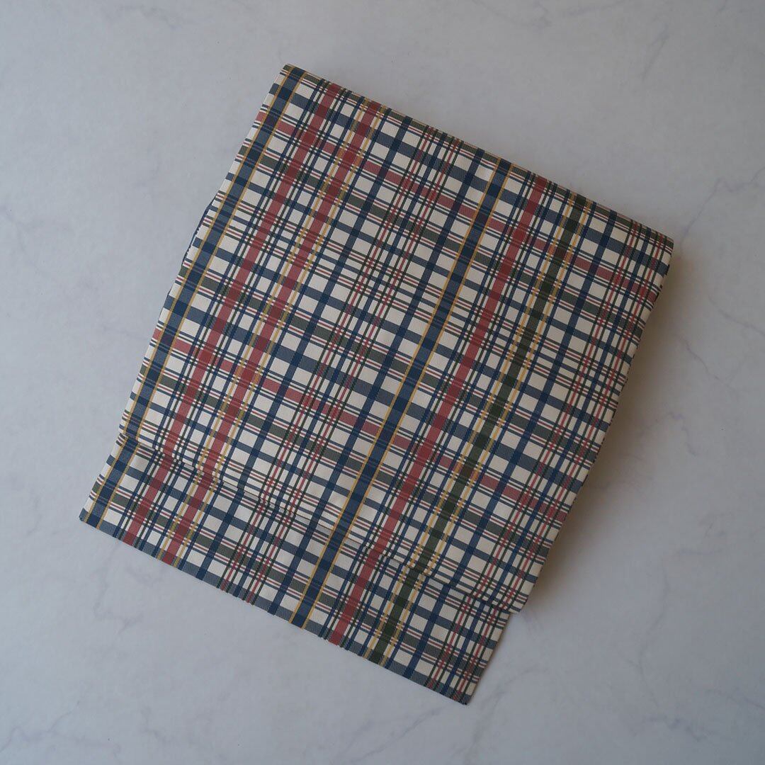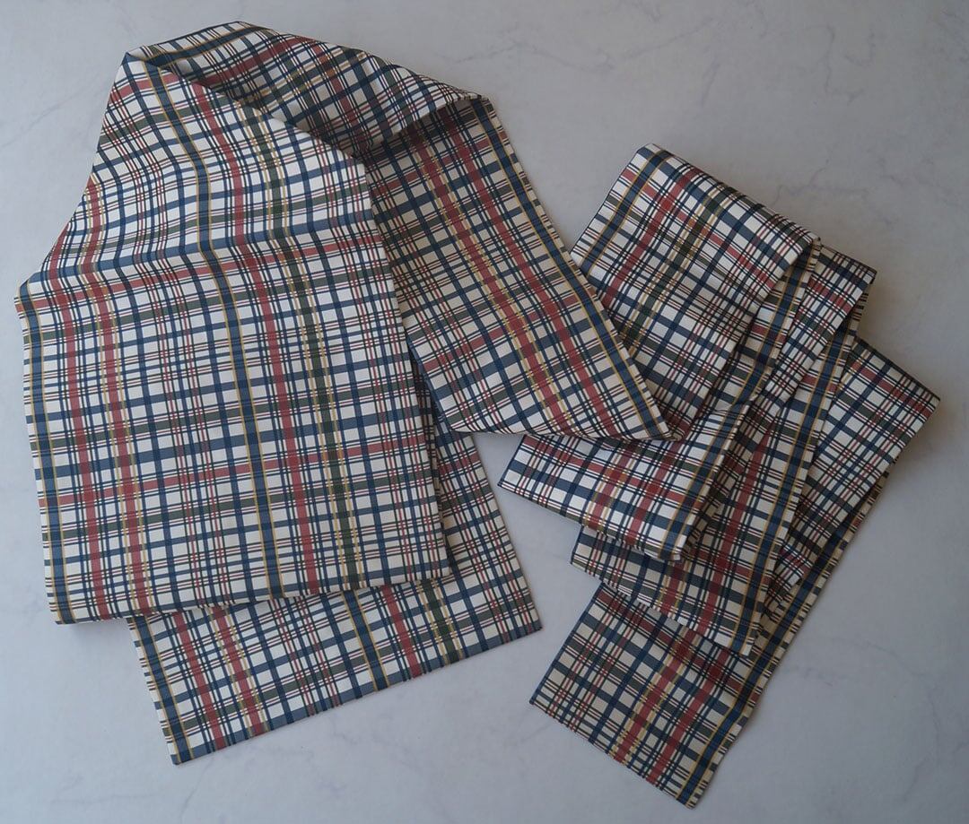 【なごや帯】白地に赤・黄・紺・緑 格子柄 なごや帯