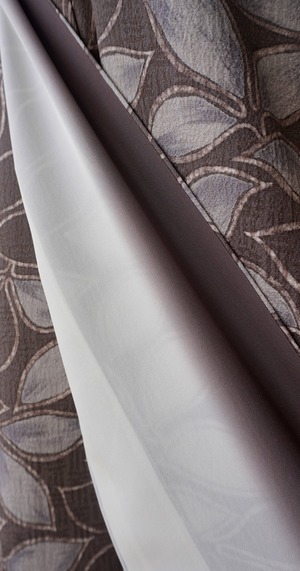 灰みがかった赤紫色の地色はシックでモダン。