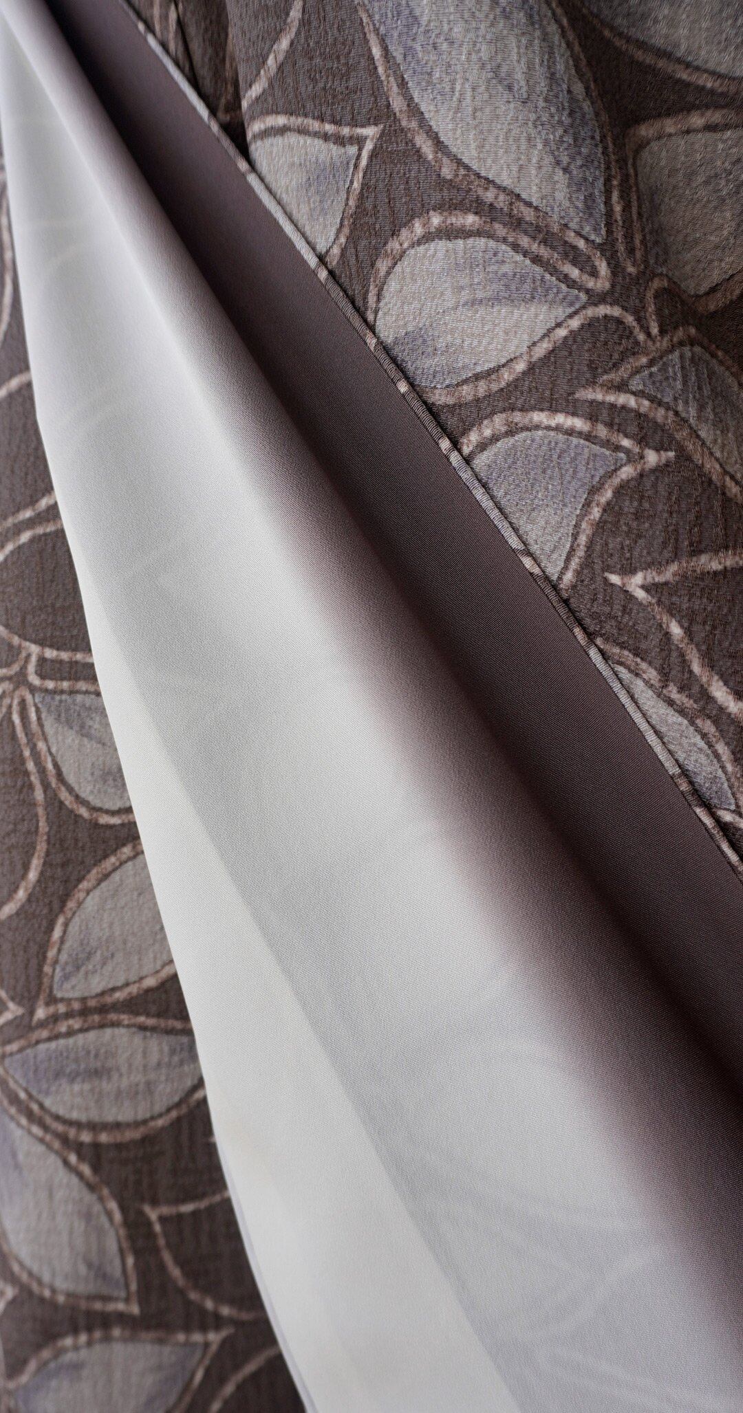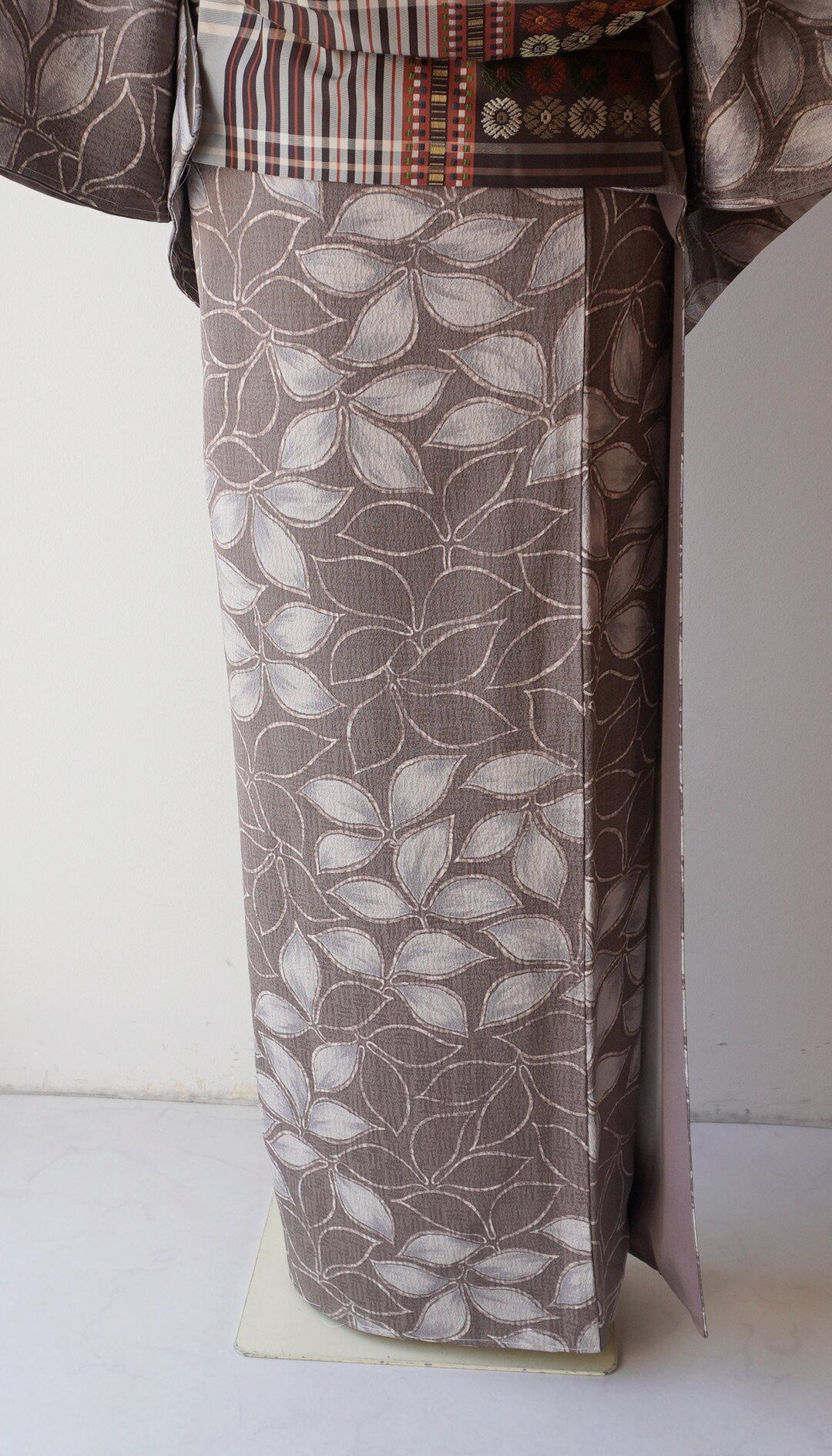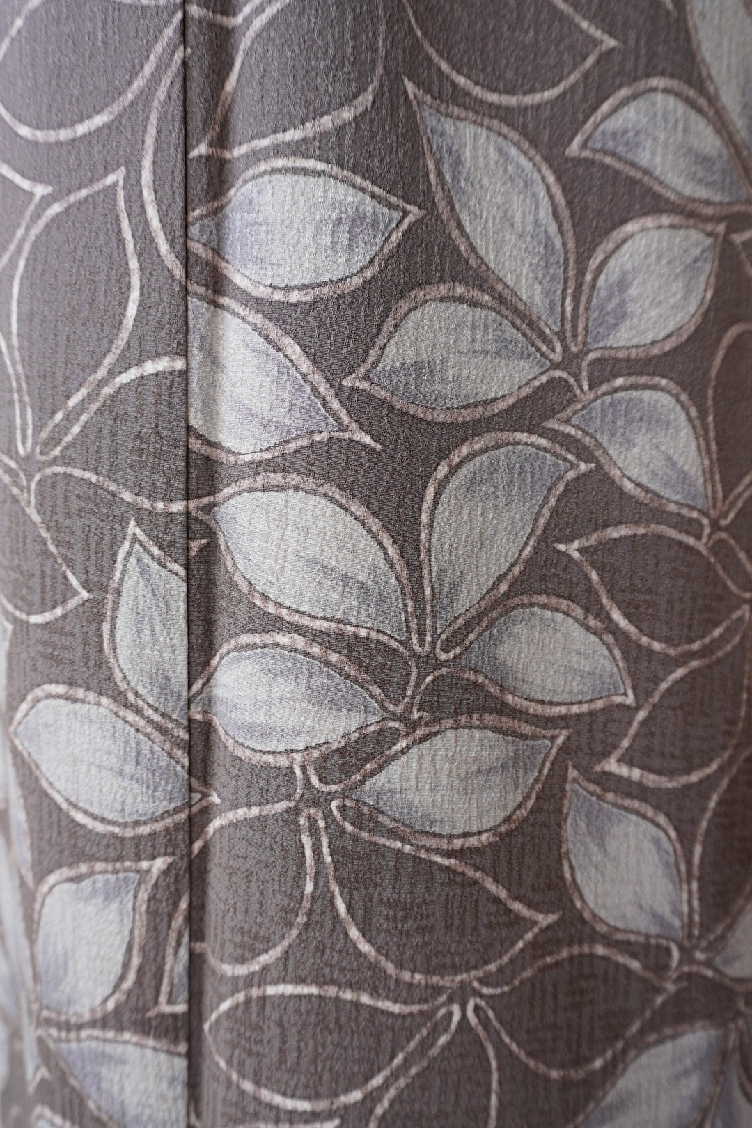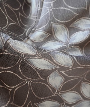 【袷】ゆったりサイズ 葡萄鼠地 抽象植物文 小紋