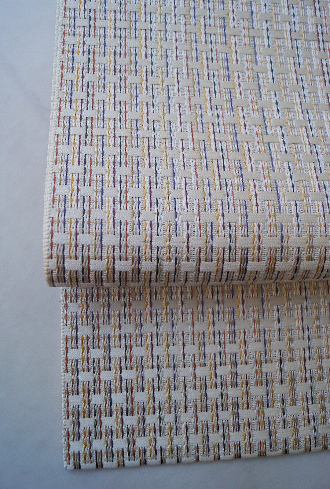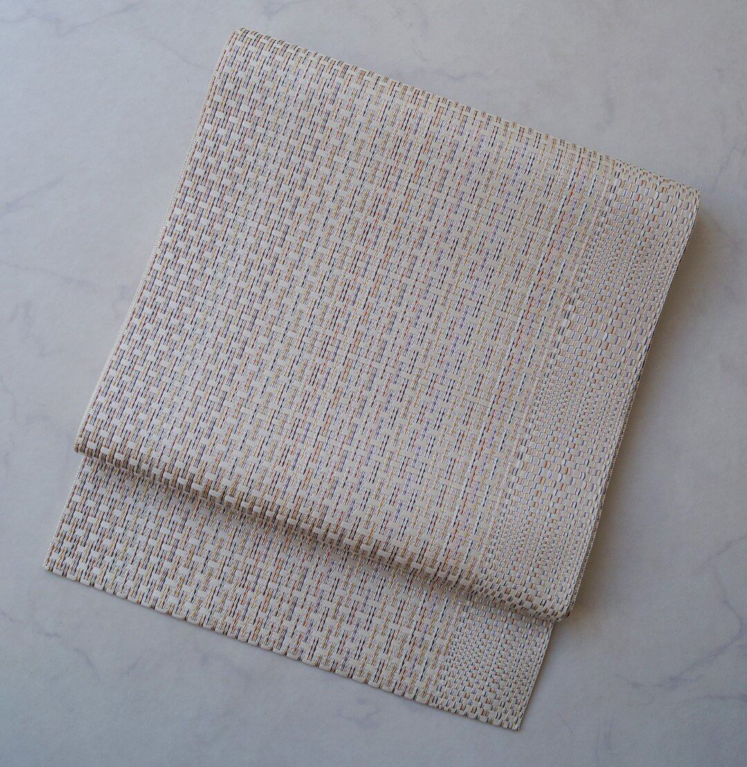 【なごや帯】生成り色×多色糸 博多織 八寸なごや帯