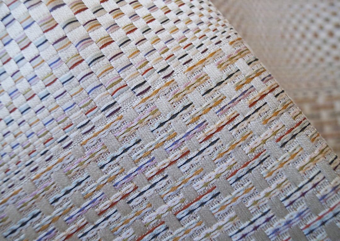 穏やかな光沢を感じる生成り地に、