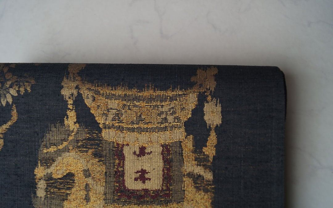 【ふくろ帯】墨黒地 焼箔紬 象文 ふくろ帯
