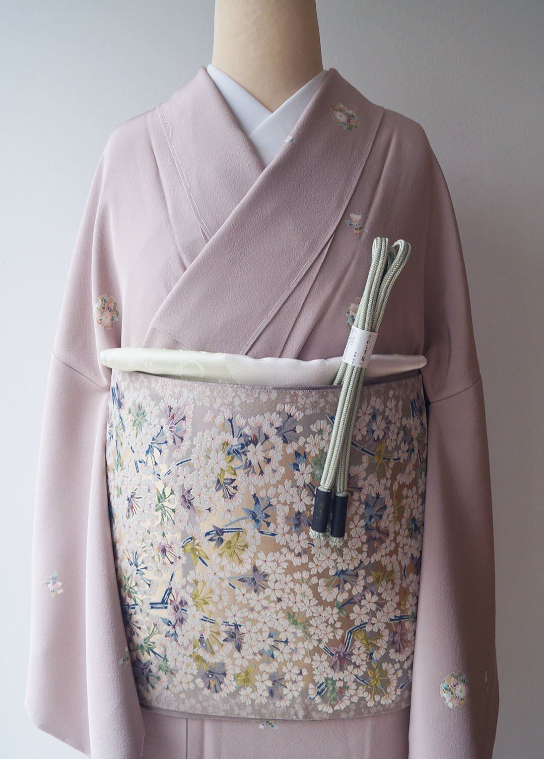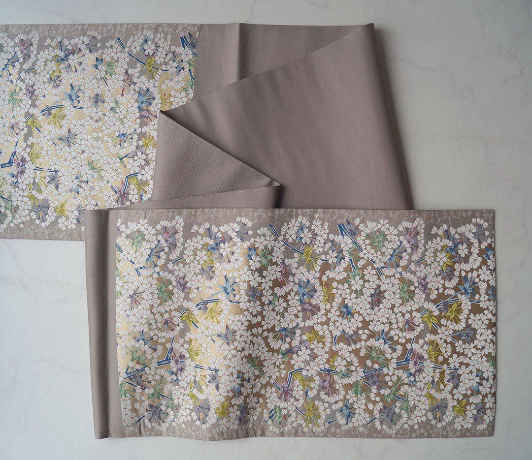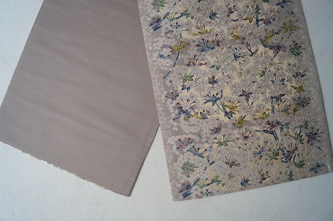 【ふくろ帯】鳩羽鼠色地 桜づくし文 ふくろ帯