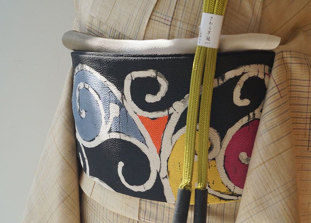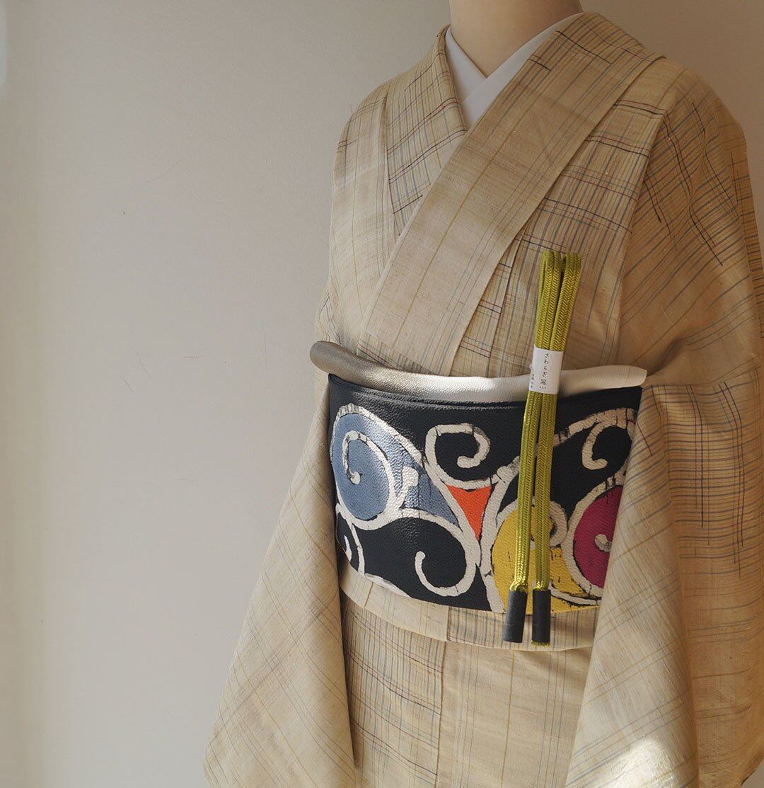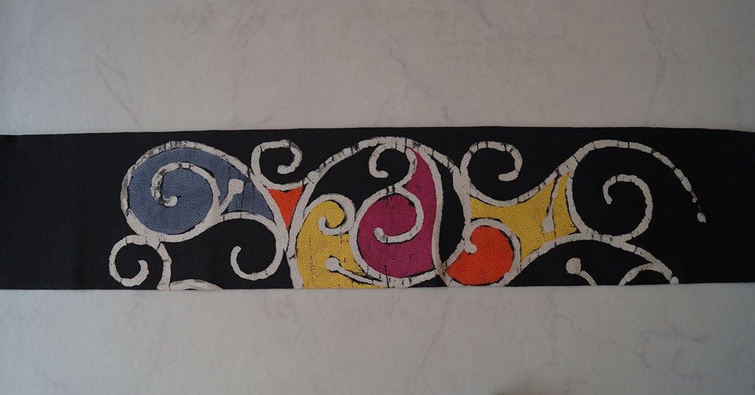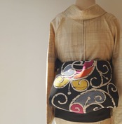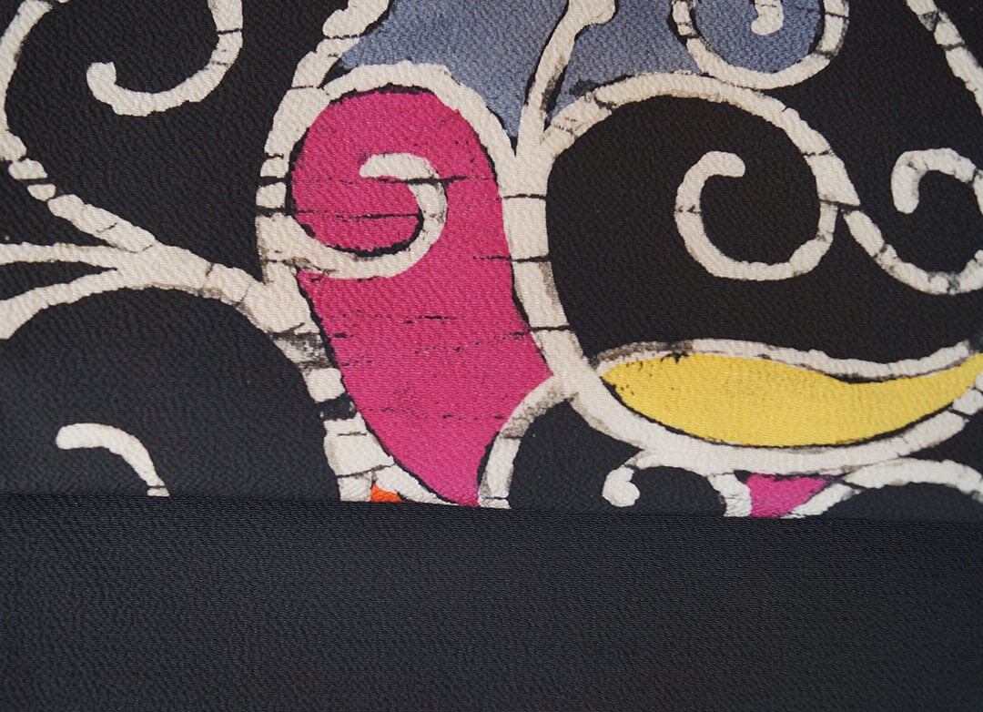 【なごや帯】黒地 抽象柄 ろうけつ染め 縮緬地 なごや帯