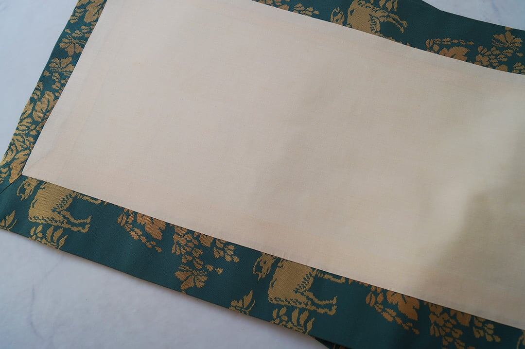 【なごや帯】虫襖色 鹿と植物文 開きなごや帯