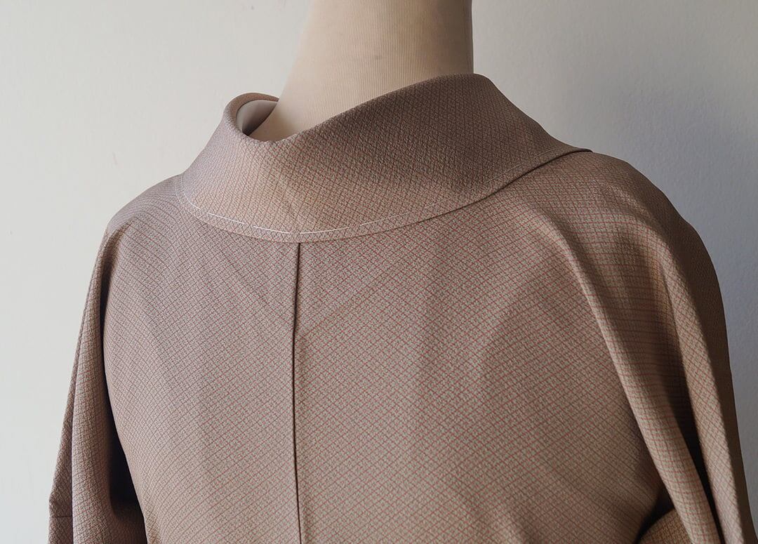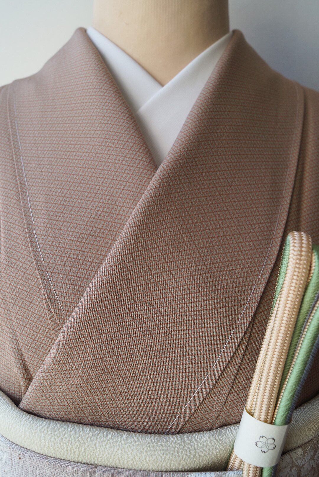 【袷】銀朱色×茶鼠色 花菱文 江戸小紋