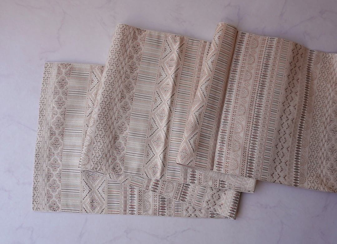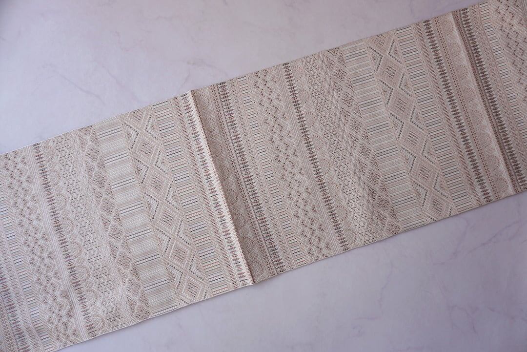 【なごや帯】生成色×一斤染 幾何学文 博多八寸なごや帯