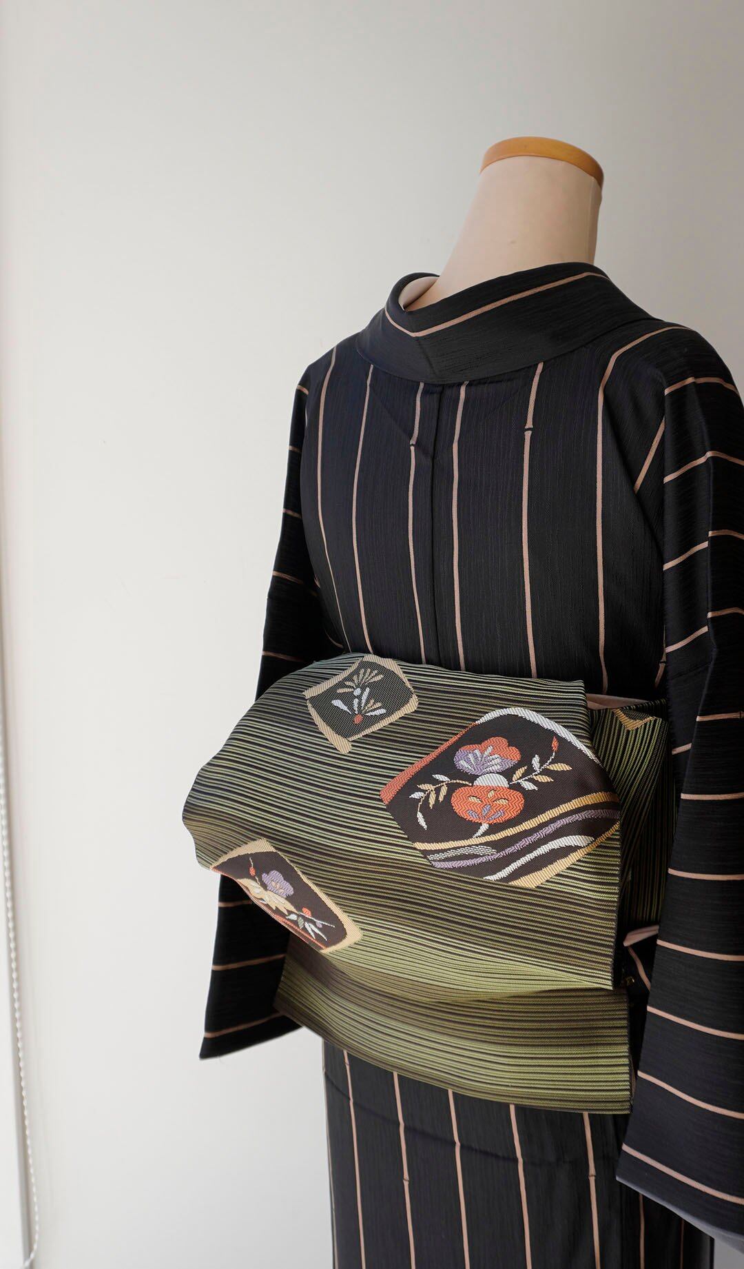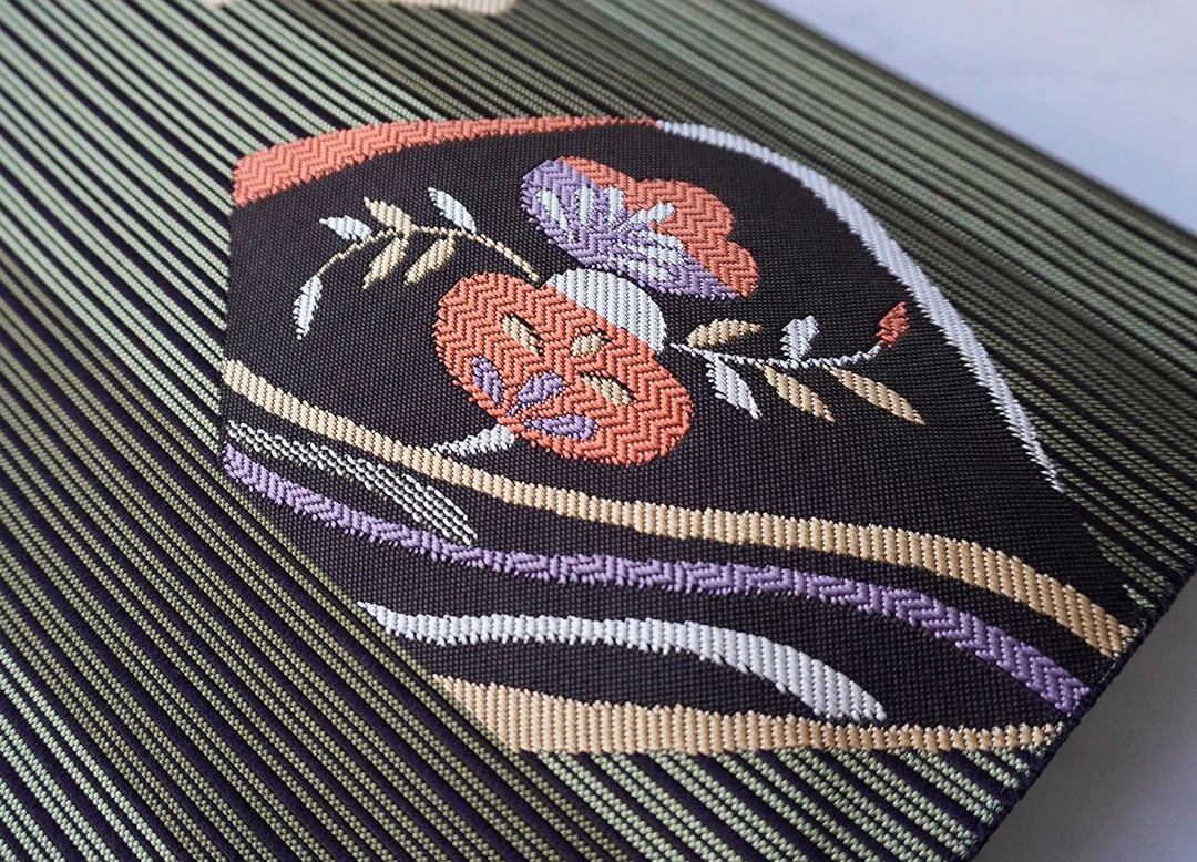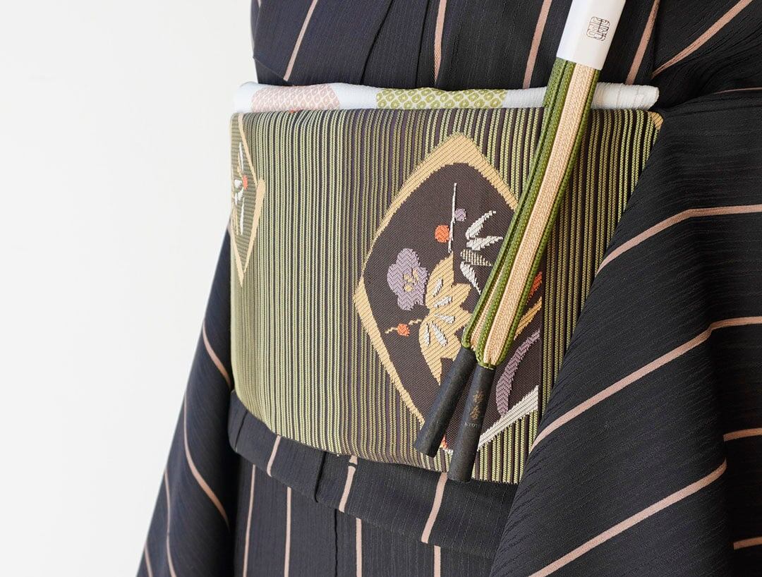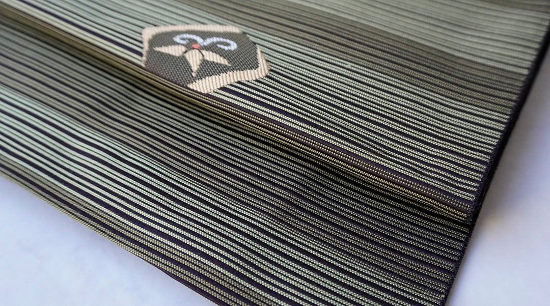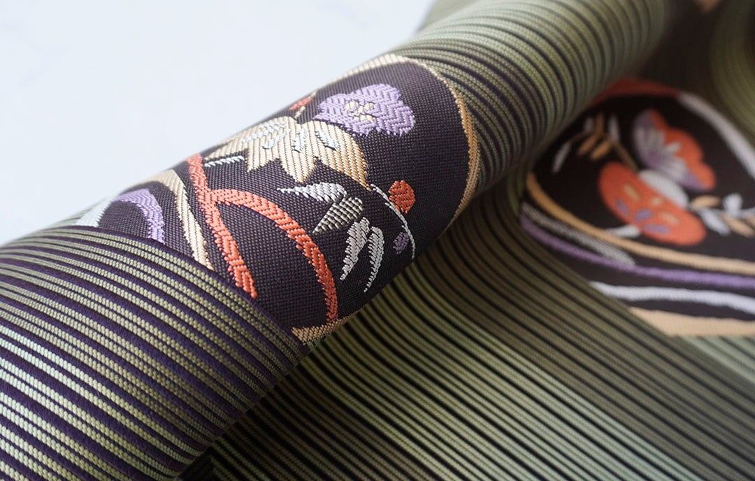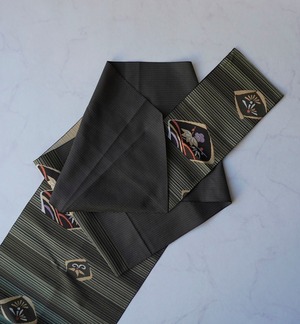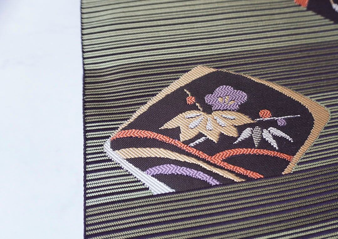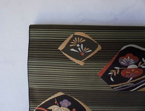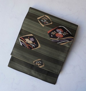 縞柄に松竹梅文を配したふくろ帯です。