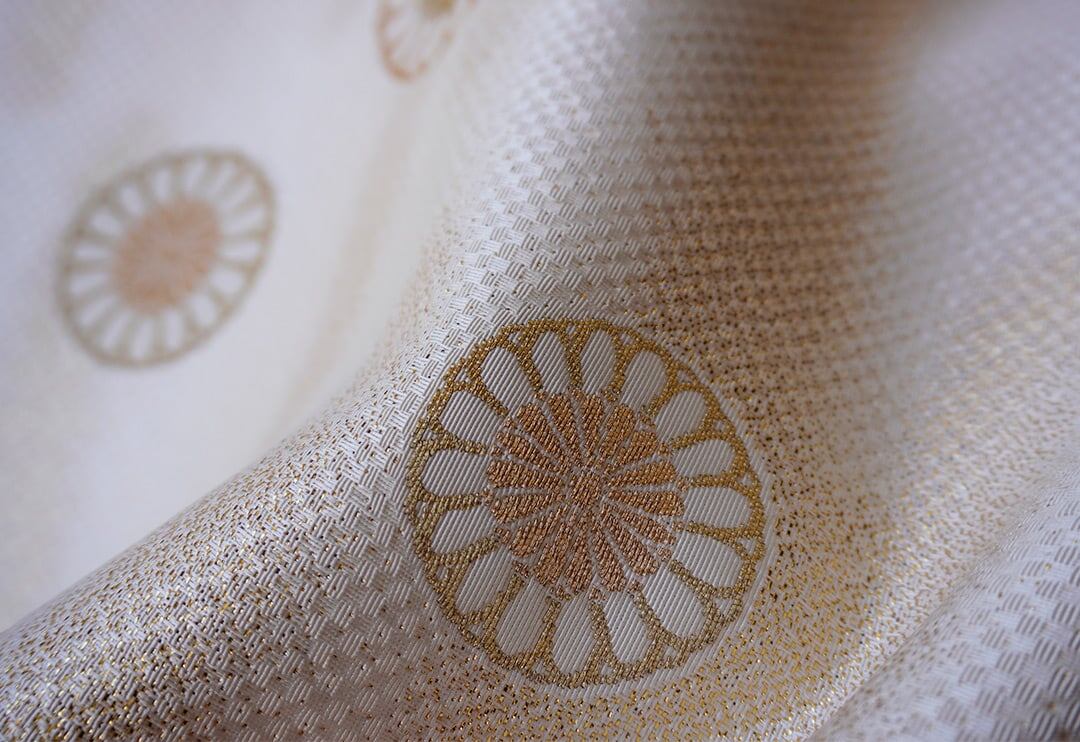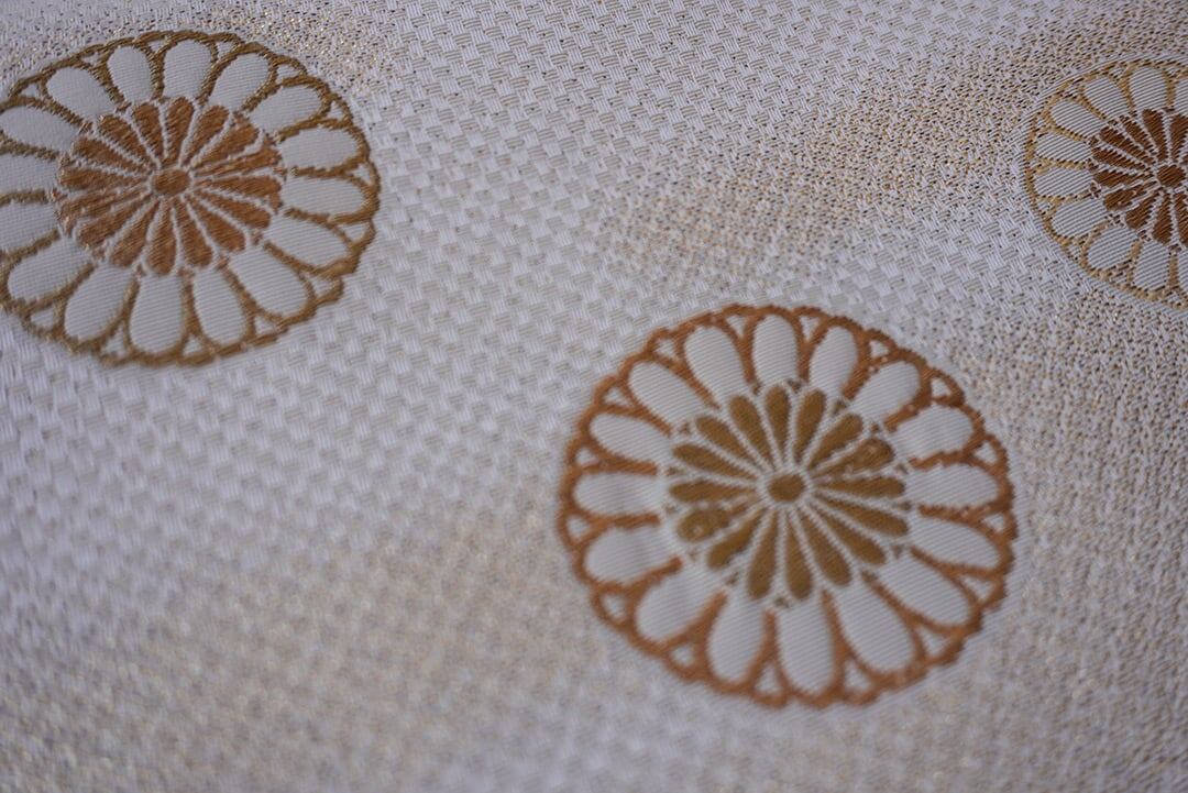 まんまるな菊華文と霞文の織り柄と
