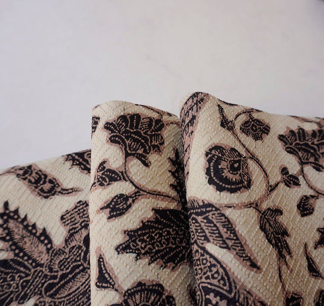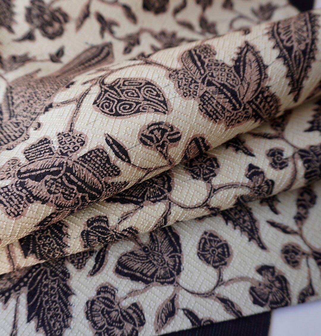 練色地に鳥や抽象的な草花が