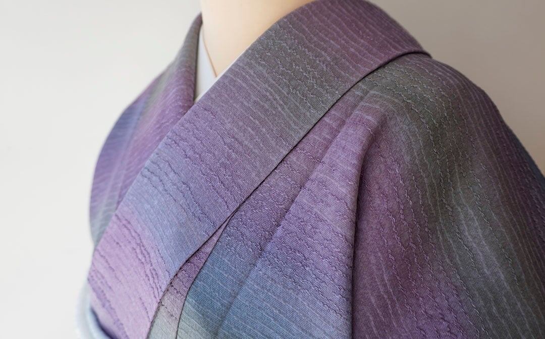 【袷】グラデーションカラー 浮き地紋 小紋