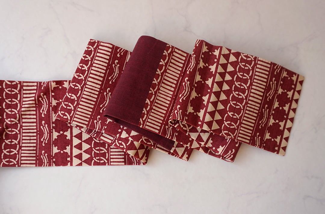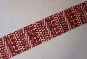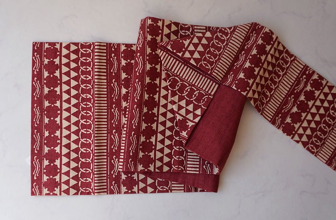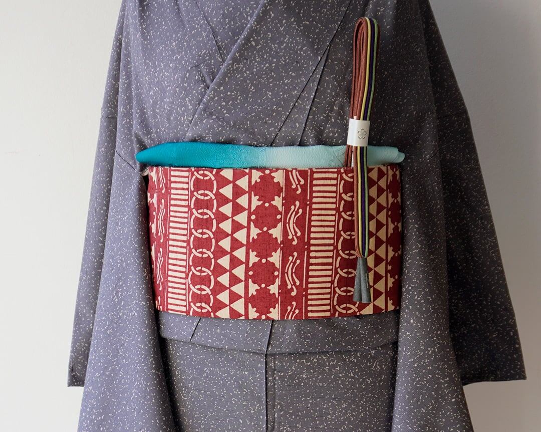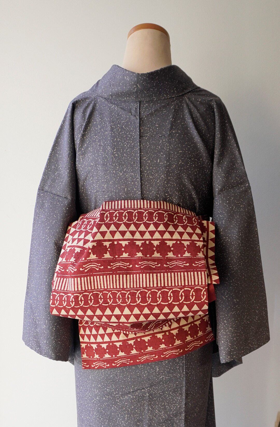 【なごや帯】朱・緋 × 生成り色 幾何学文 型染 なごや帯