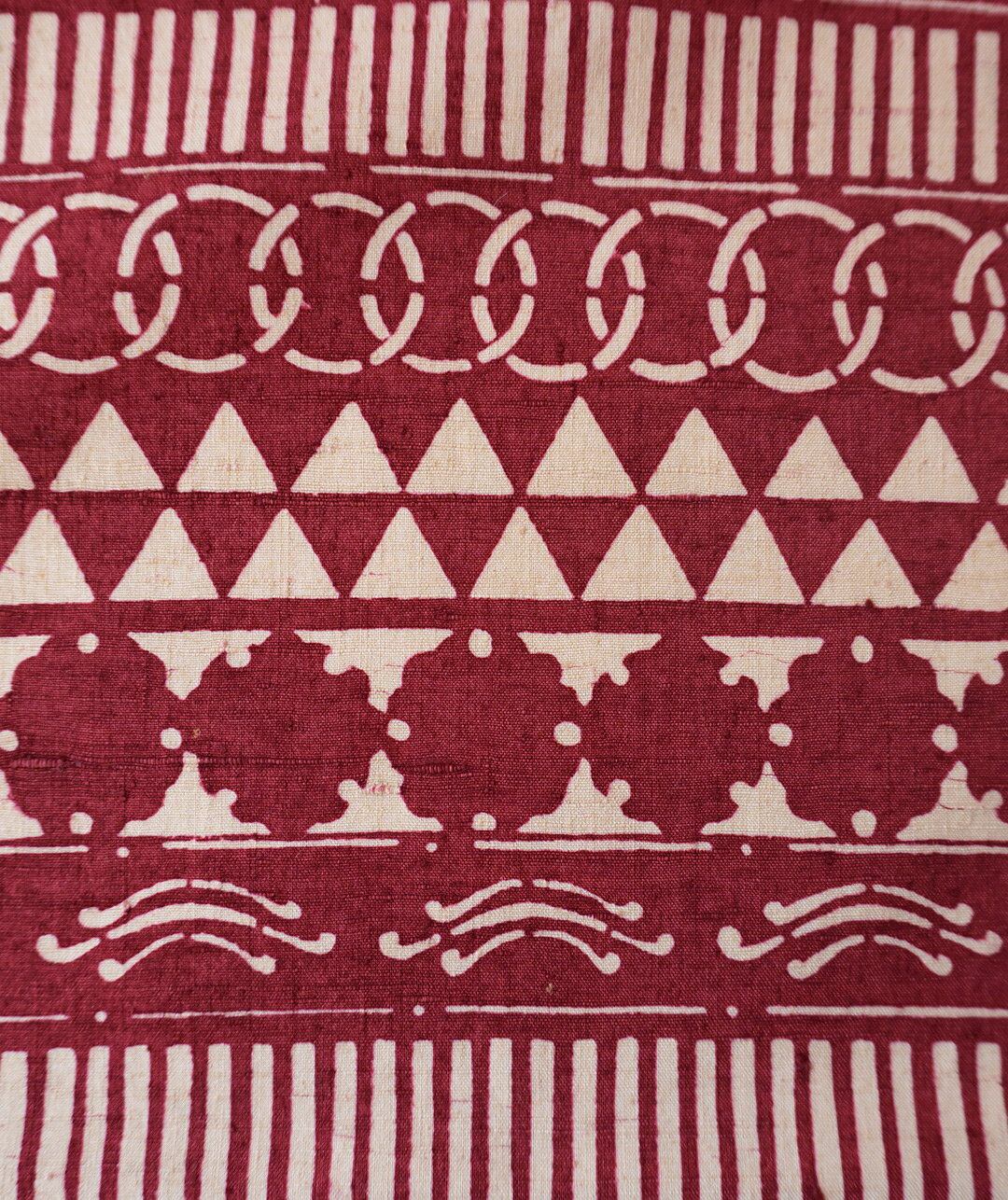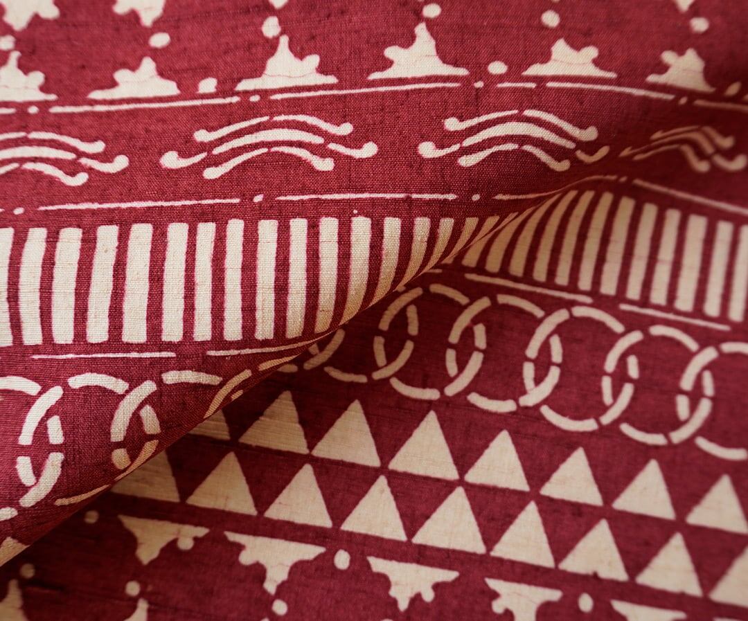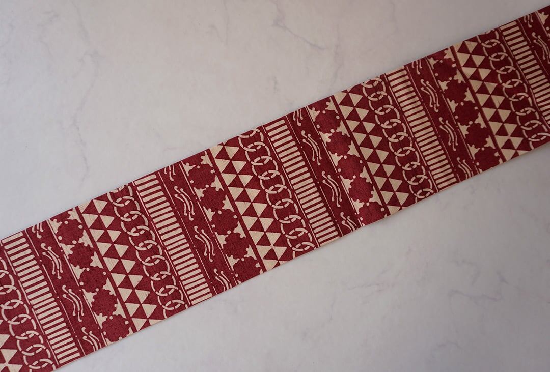 【なごや帯】朱・緋 × 生成り色 幾何学文 型染 なごや帯