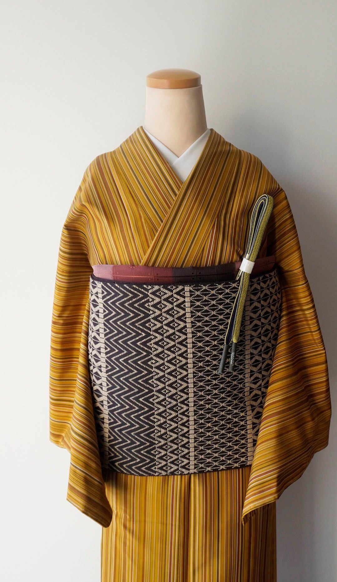 こちらの帯は複数の幾何学文様を