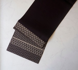 【なごや帯】 黒鳶色 こぎん刺し風 幾何学文 開きなごや帯
