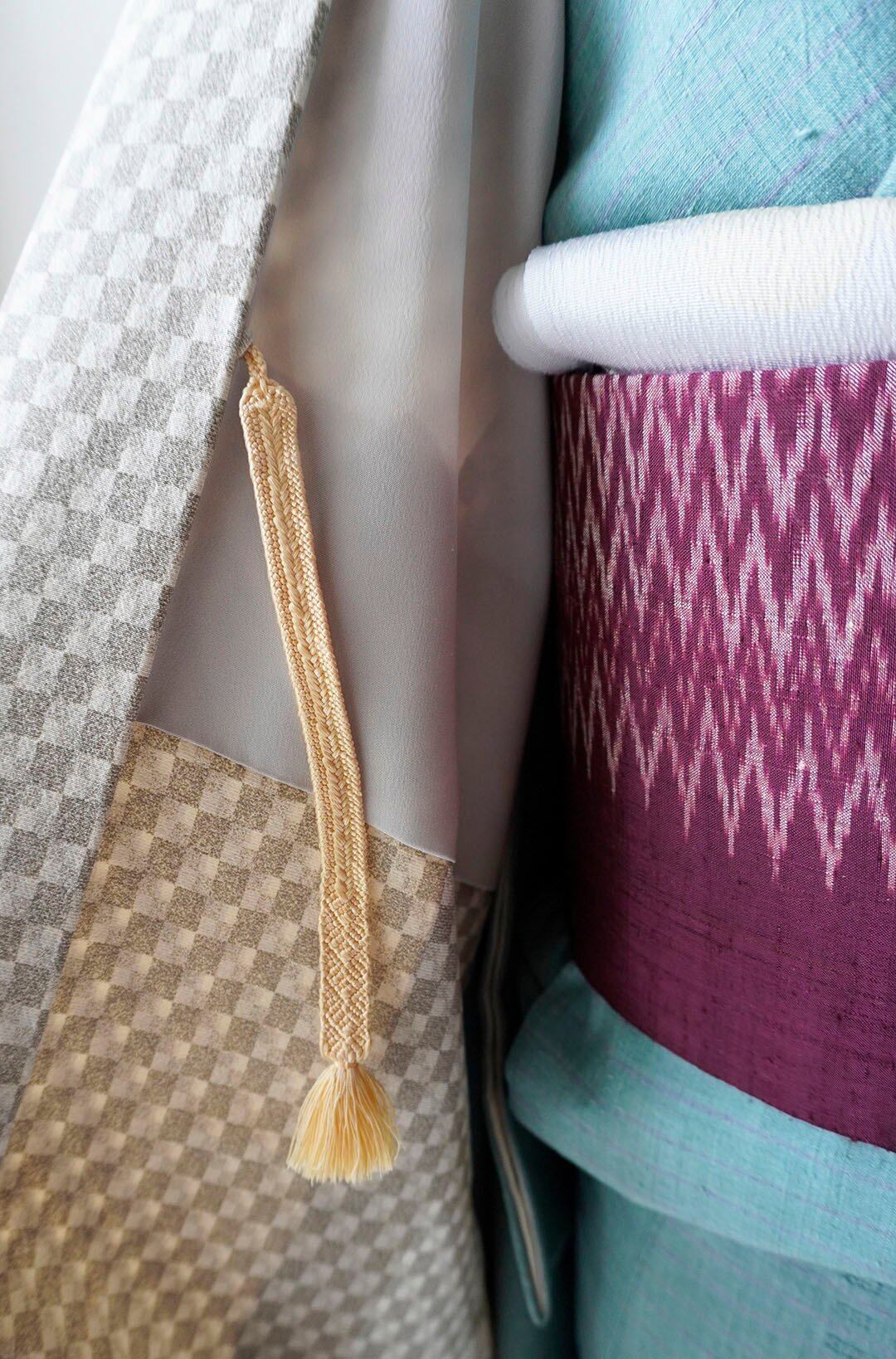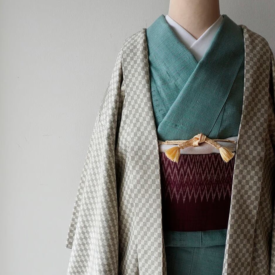 【袷羽織】高島屋扱い 灰色系 縦縞 市松文 袷羽織