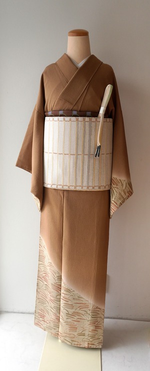 柔らかな黄味がかった茶系の地に、
