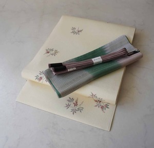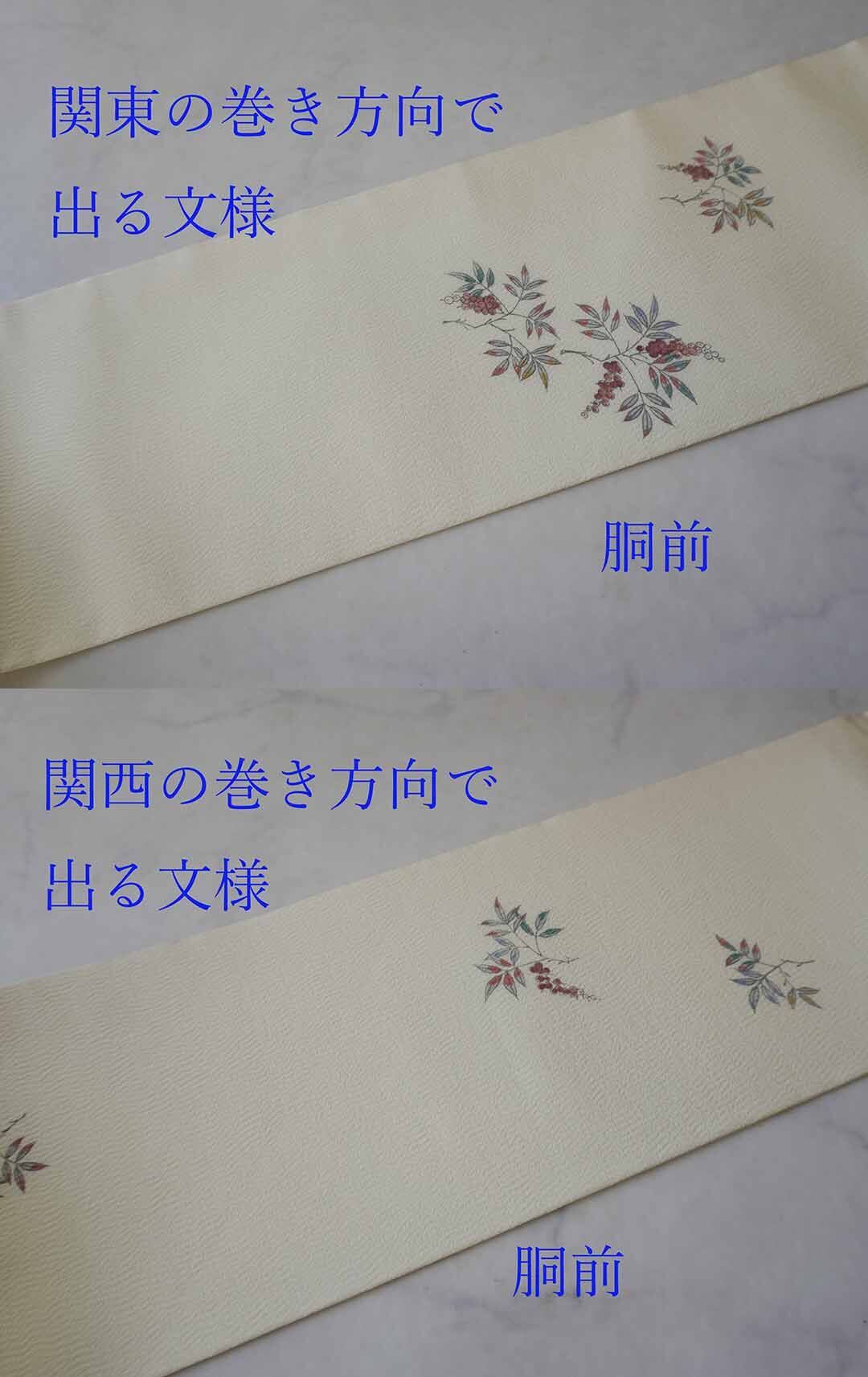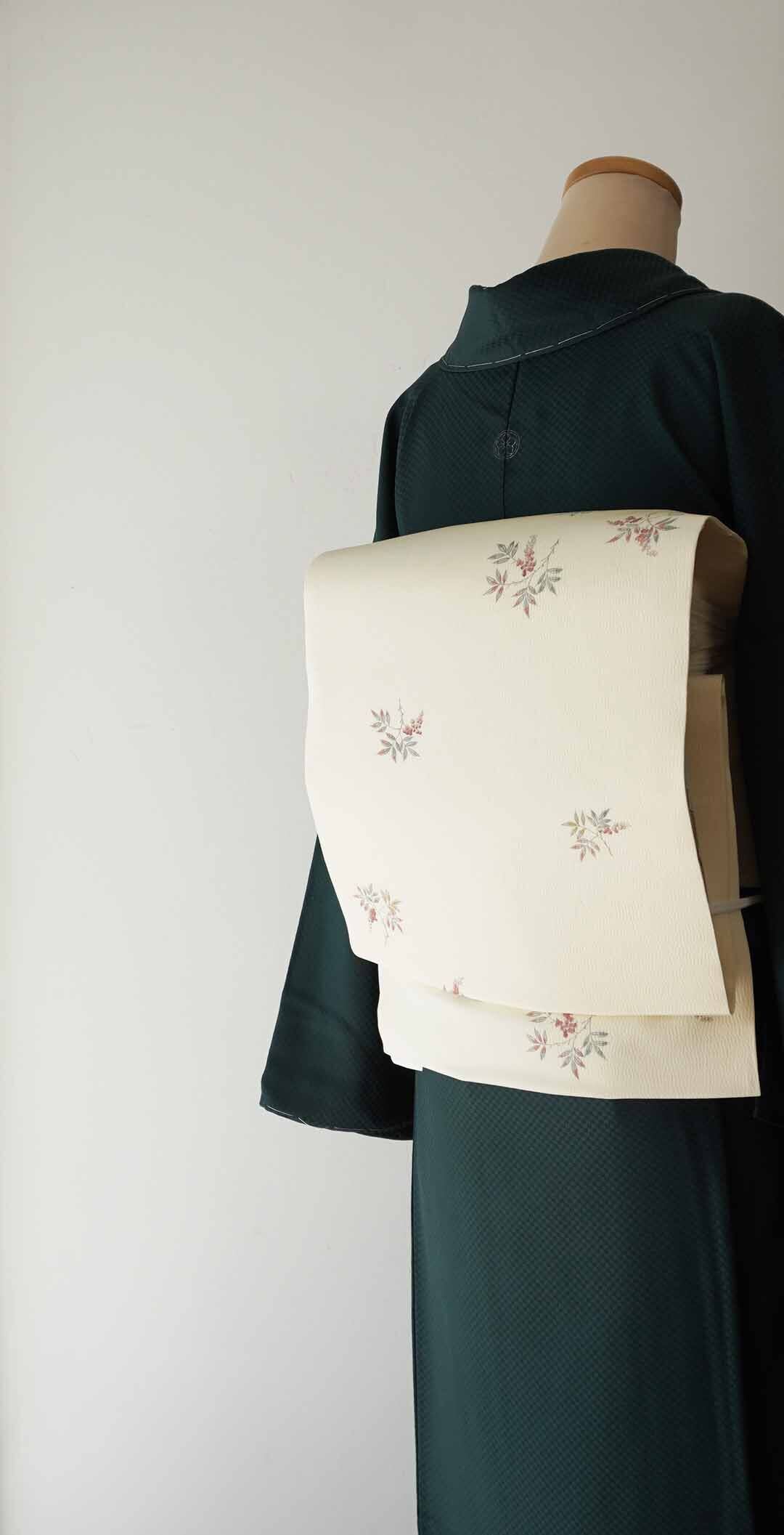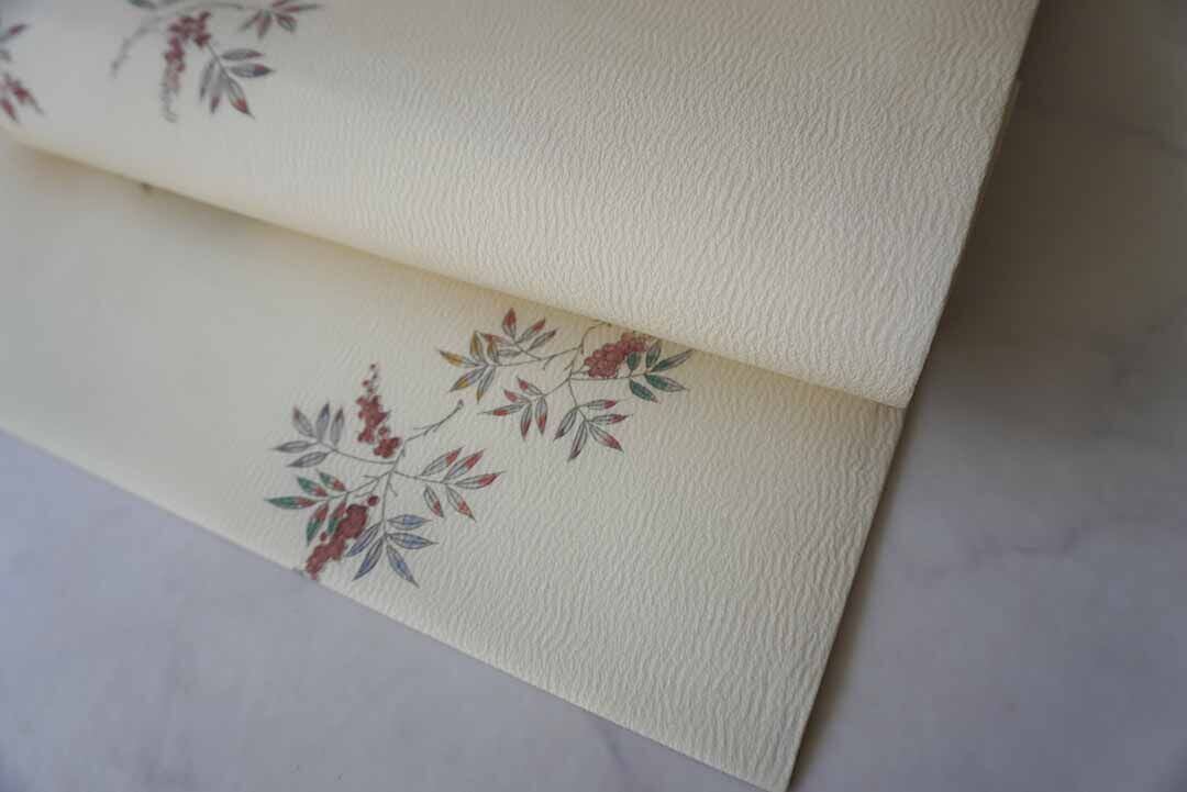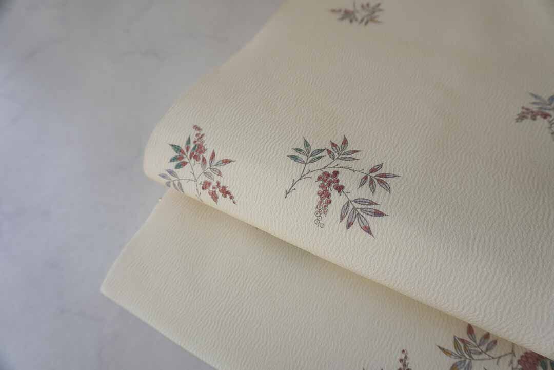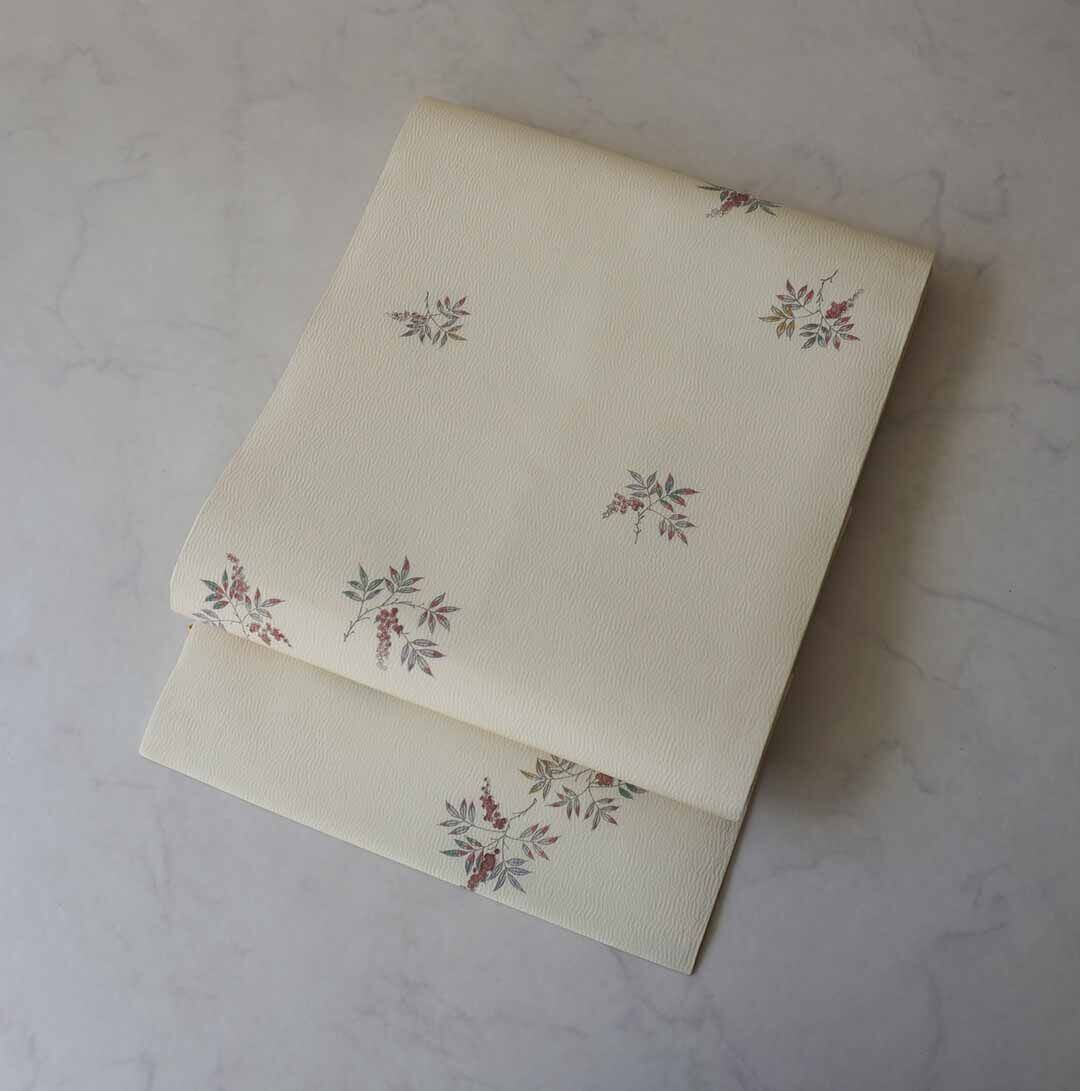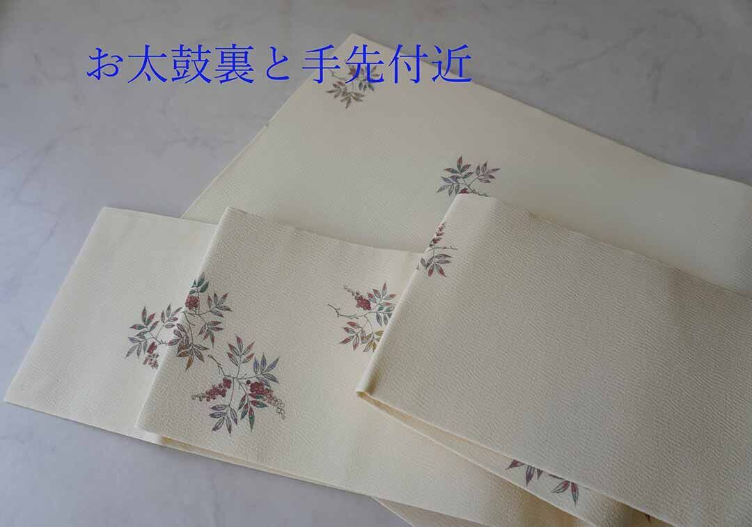 【なごや帯】生成り色地 実りの植物文 仕立ておろし なごや帯
