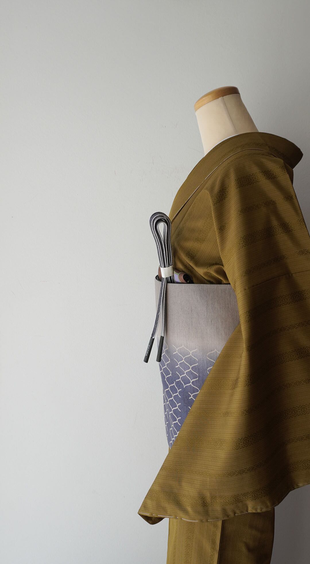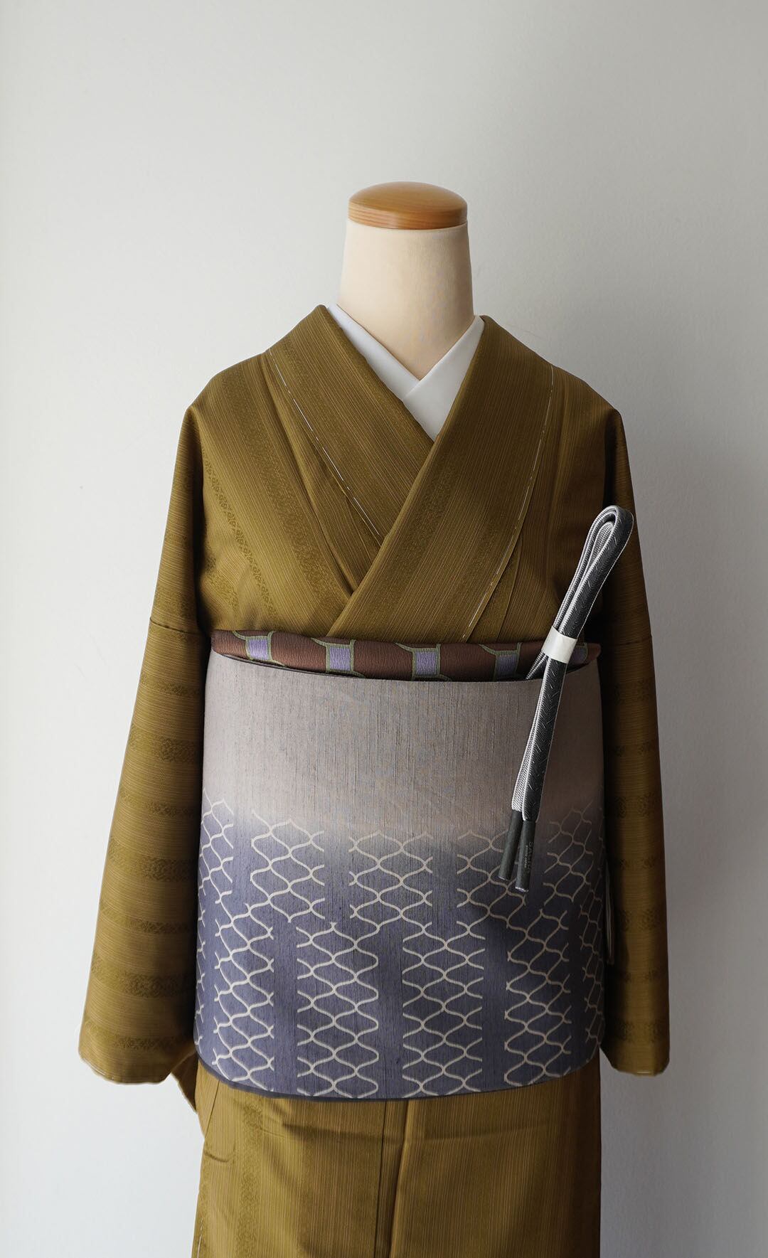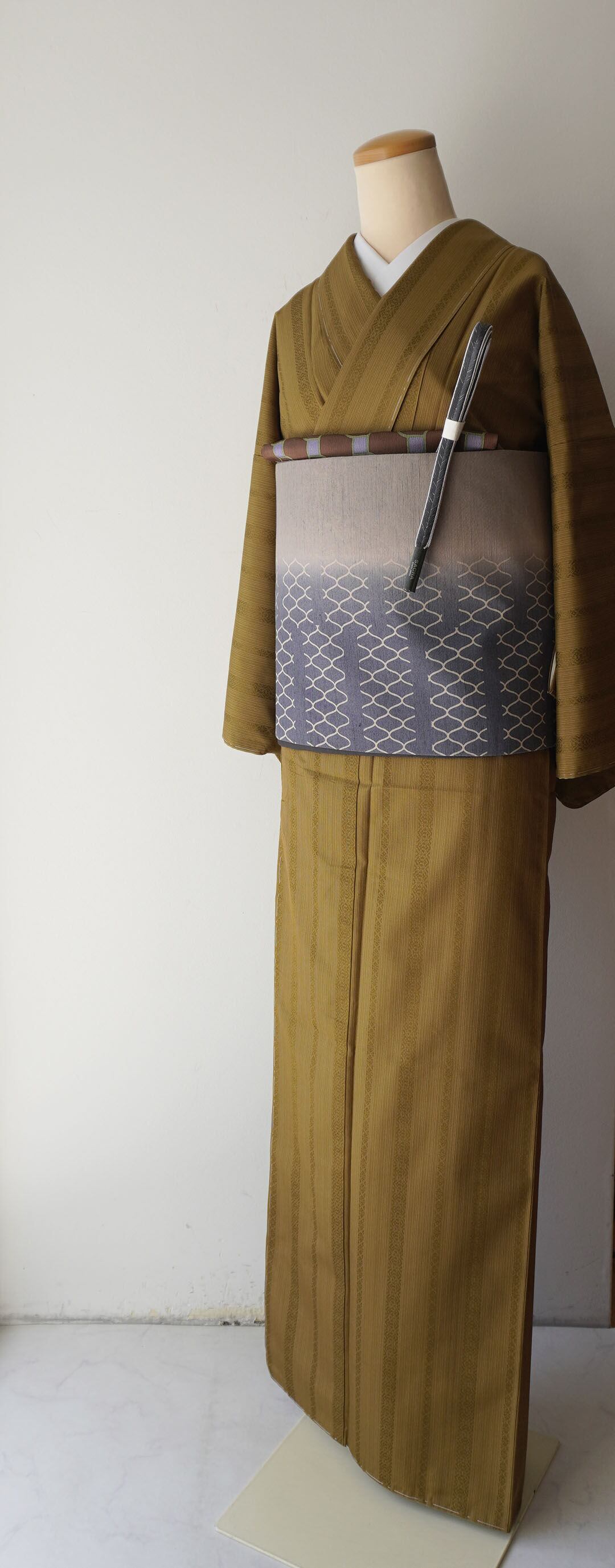 【袷】桑茶色 独鈷文 華皿文 博多織お召