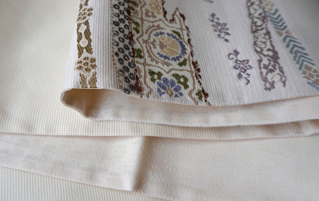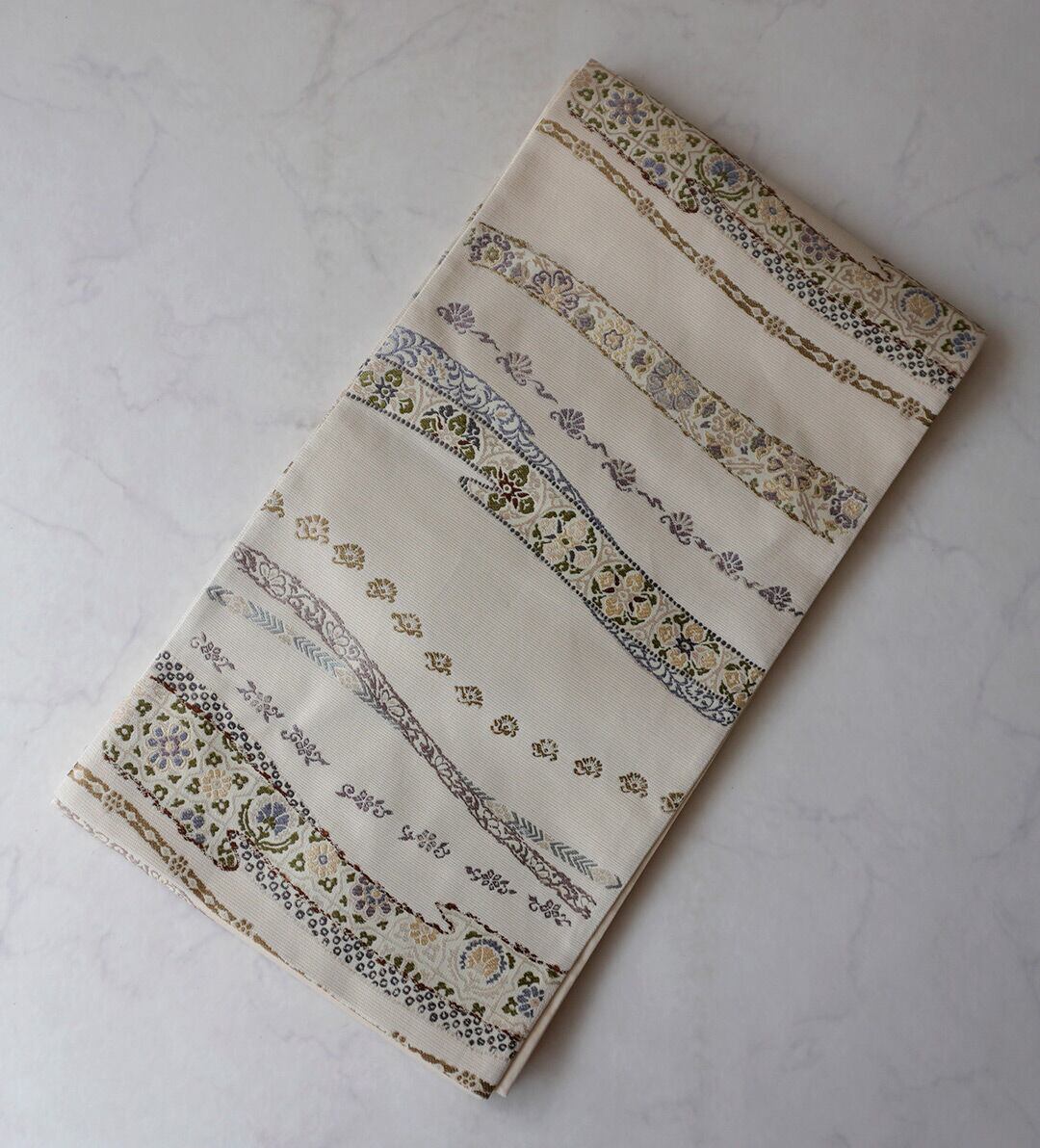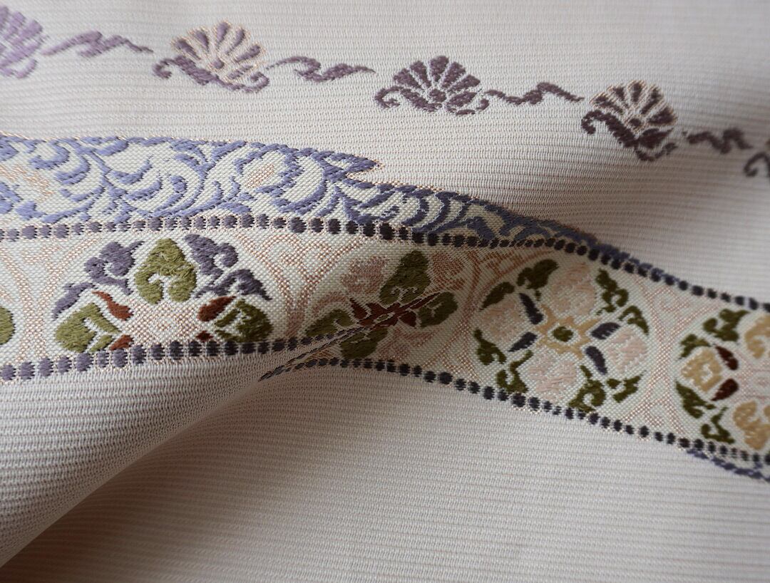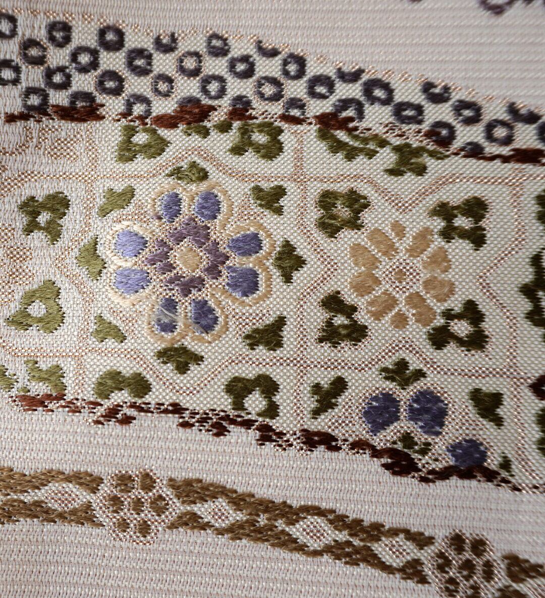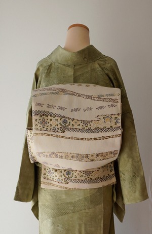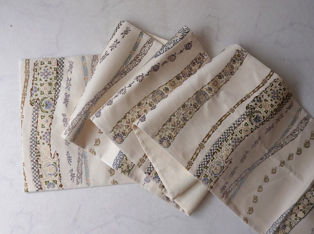 【ふくろ帯】西陣丸勇 生成り色地 花横段文 ふくろ帯