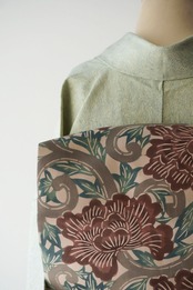 【なごや帯】梅鼠色牡丹唐草 塩瀬なごや帯