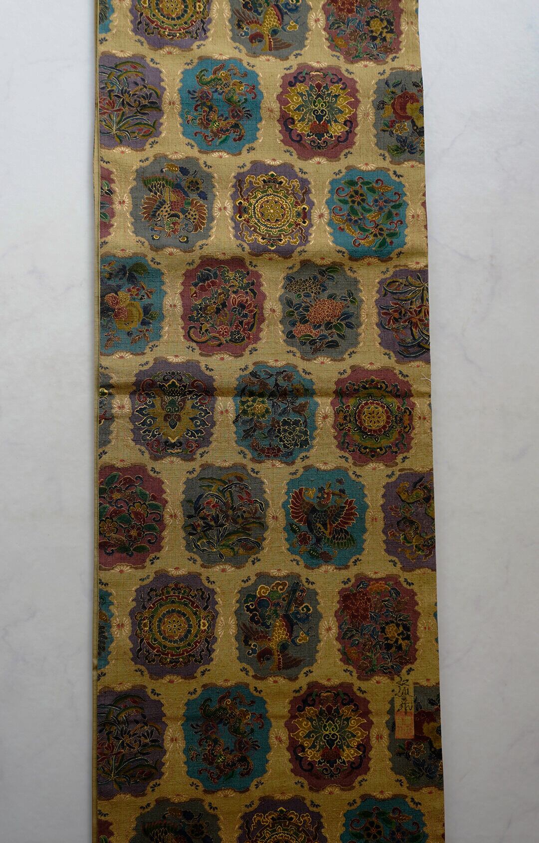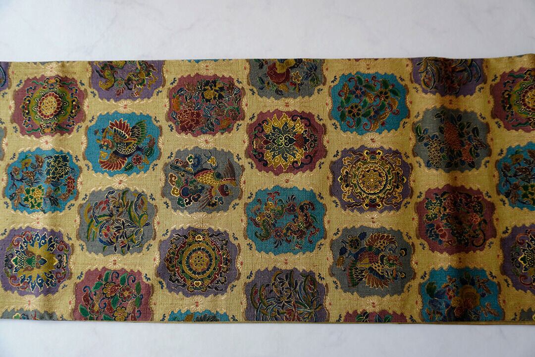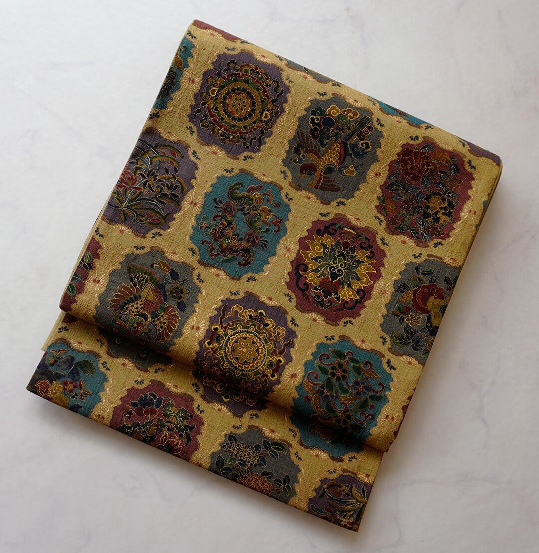 こちらは桑染色、八角枠に様々なお柄が