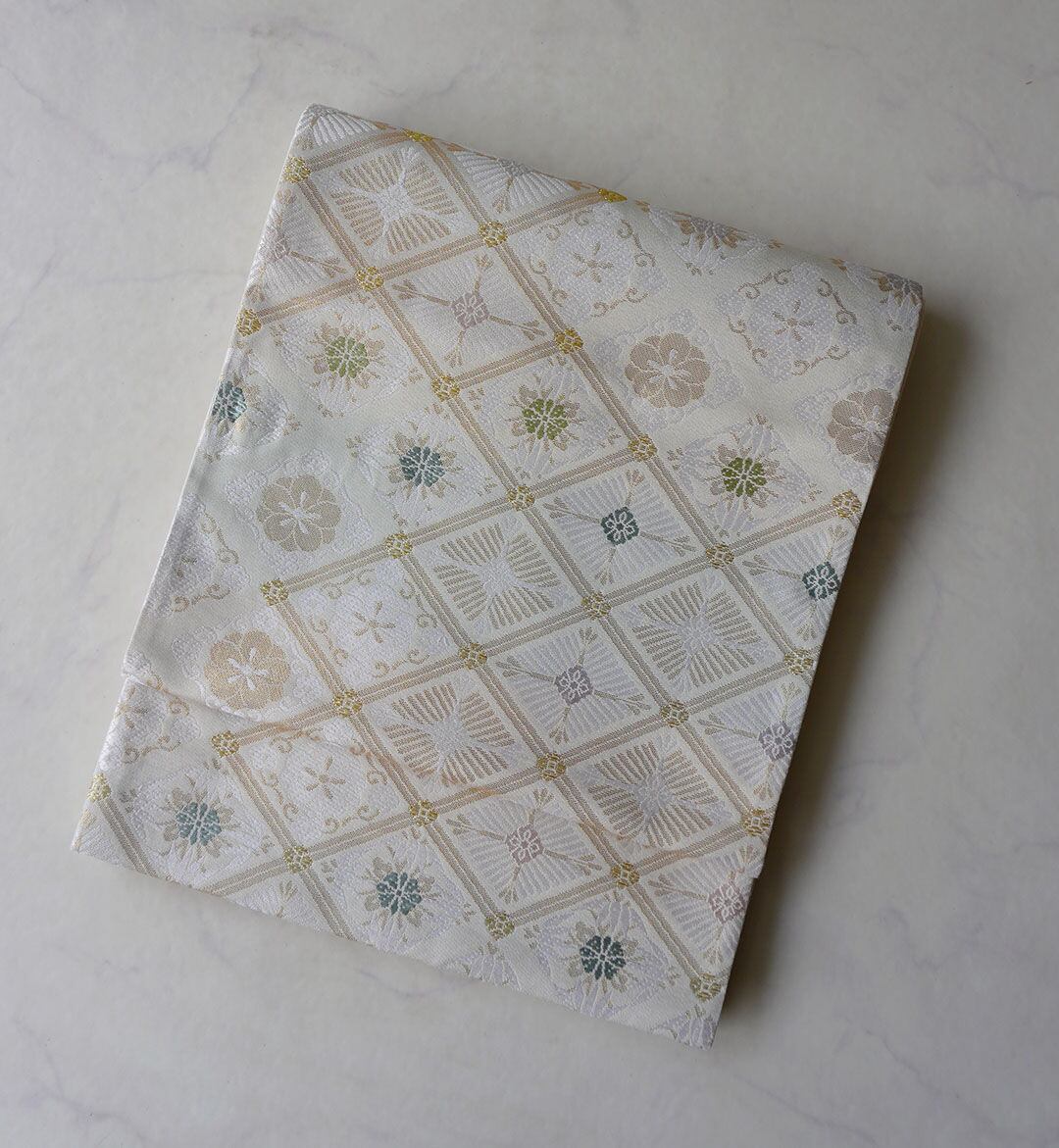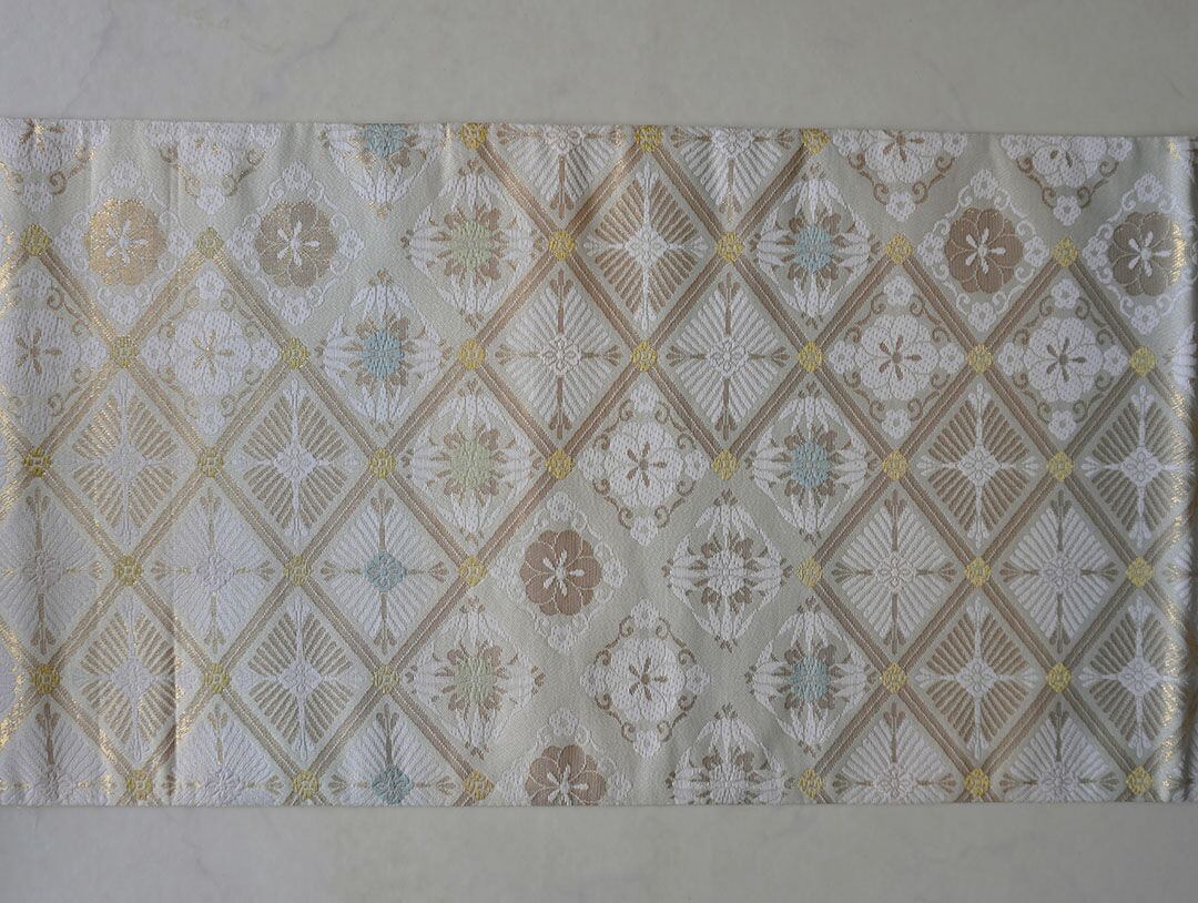 【ふくろ帯】生成り色地 松竹梅菱文 ふくろ帯
