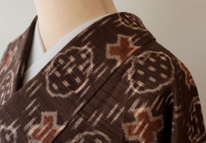絣のお柄は幾何絣ですが、抽象的な