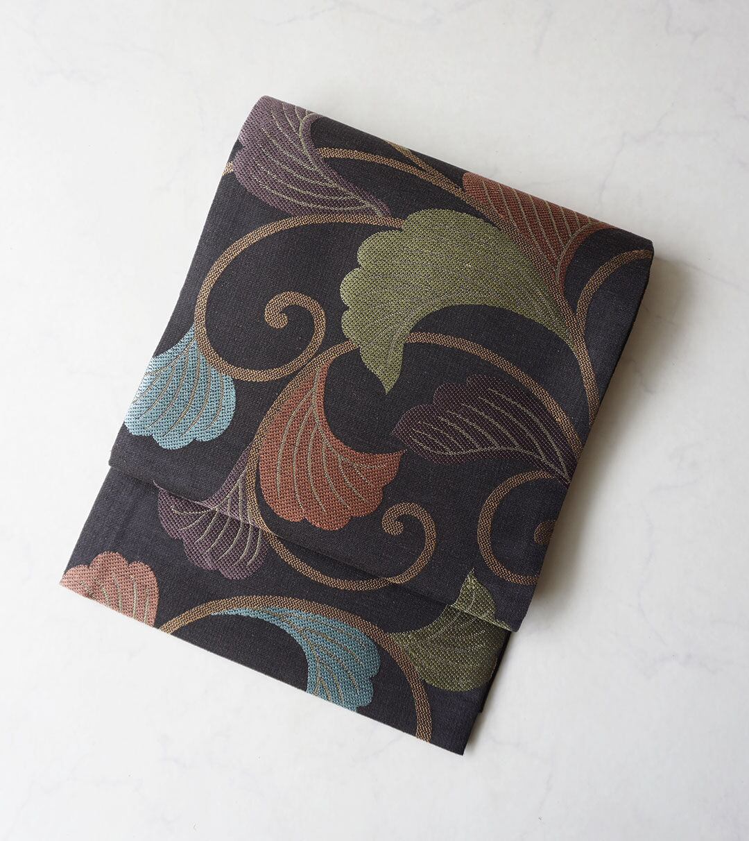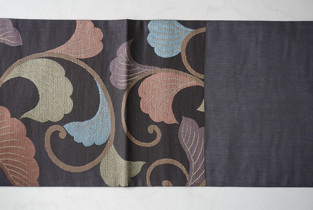 【夏ふくろ帯】黒鳶色地 唐草文 夏洒落ふくろ帯