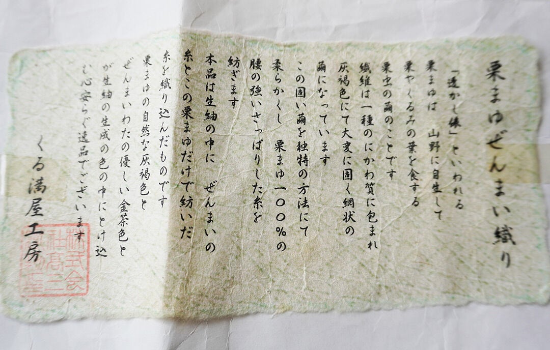 栗まゆだけで紡いだ糸を織り込んでいます。