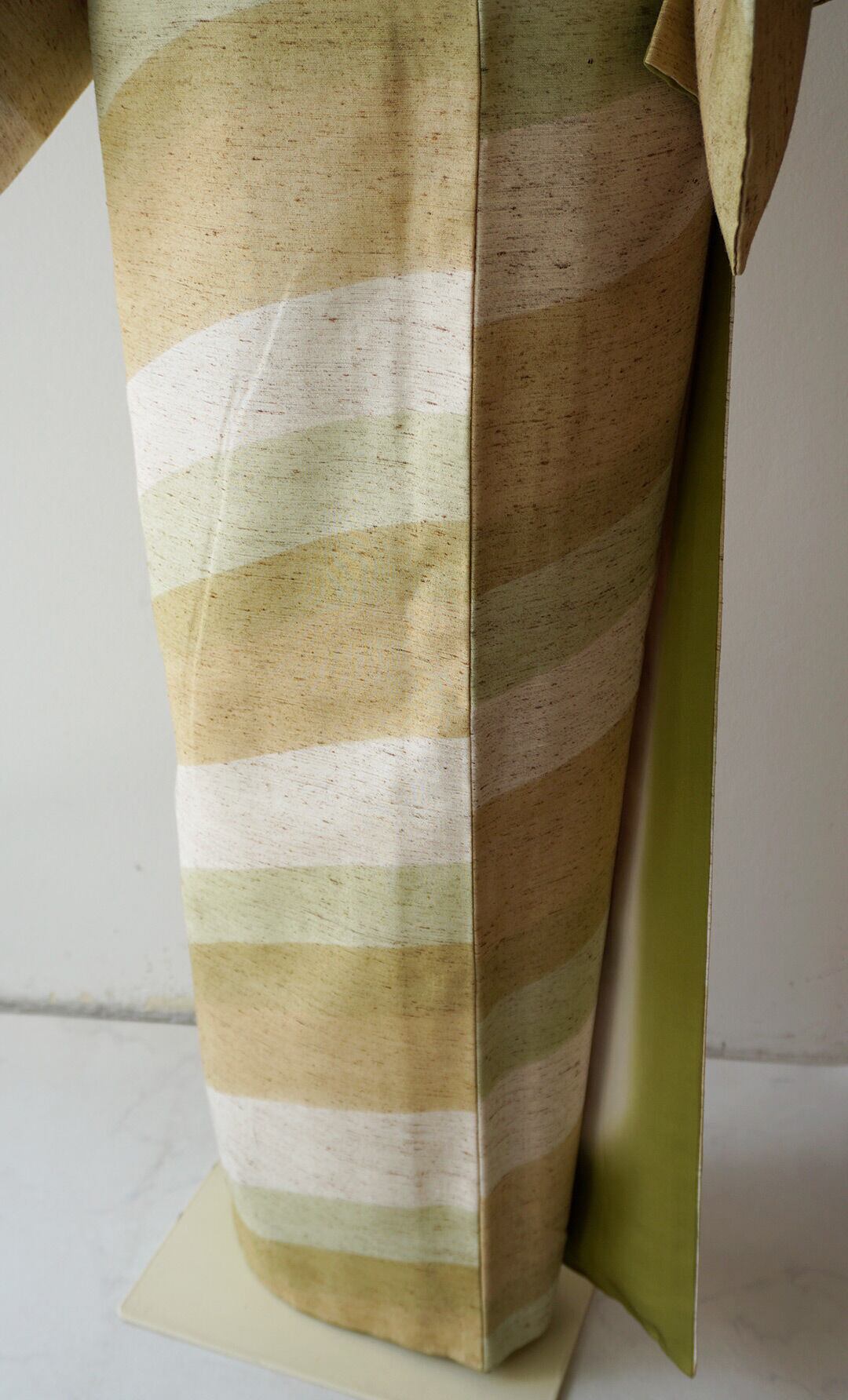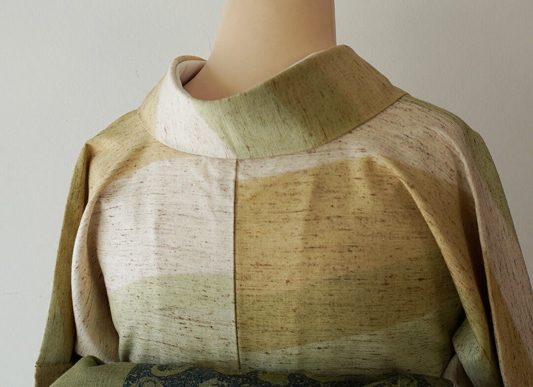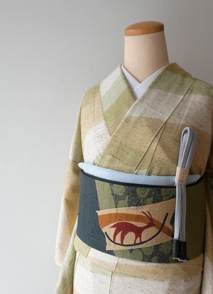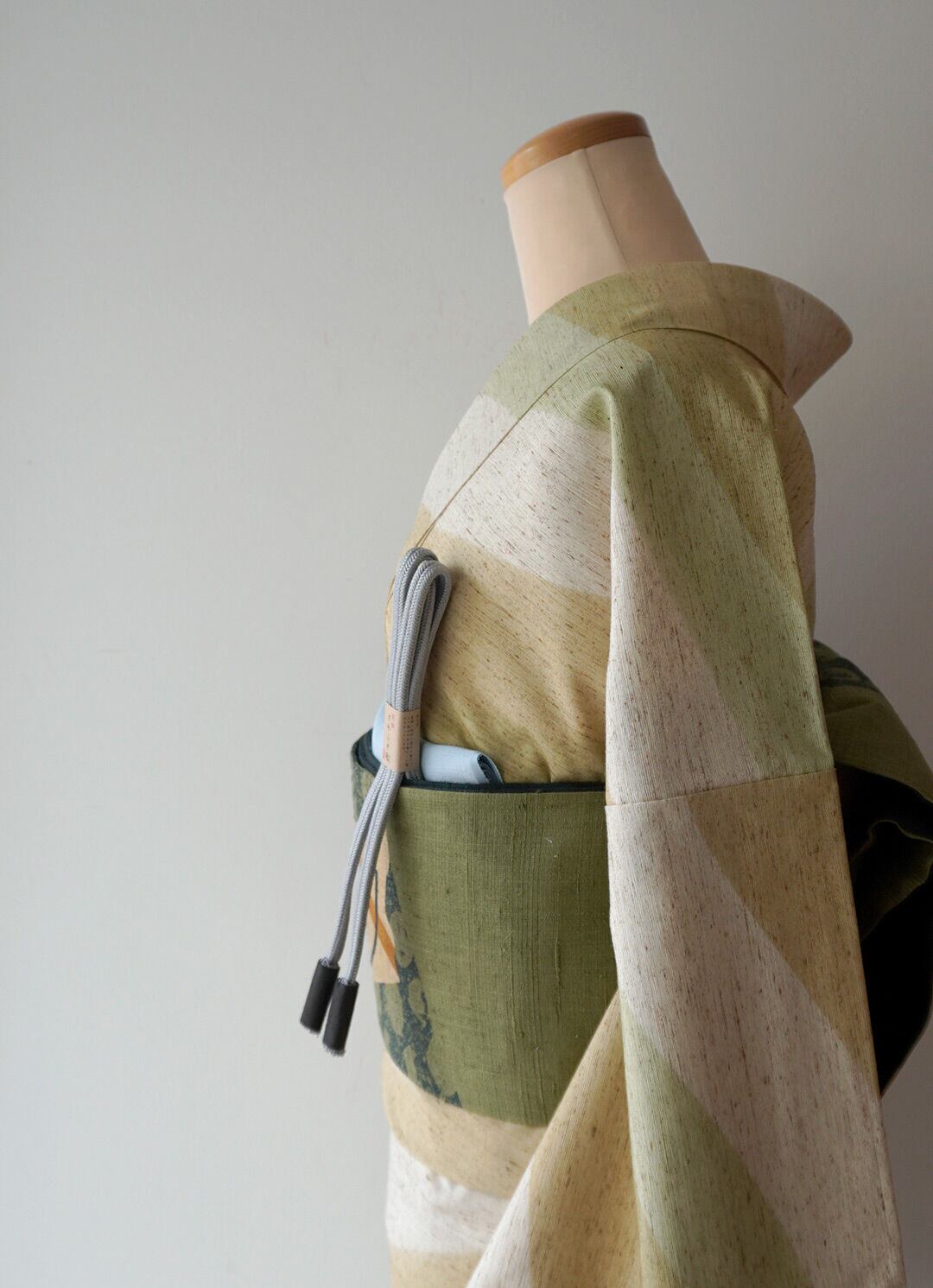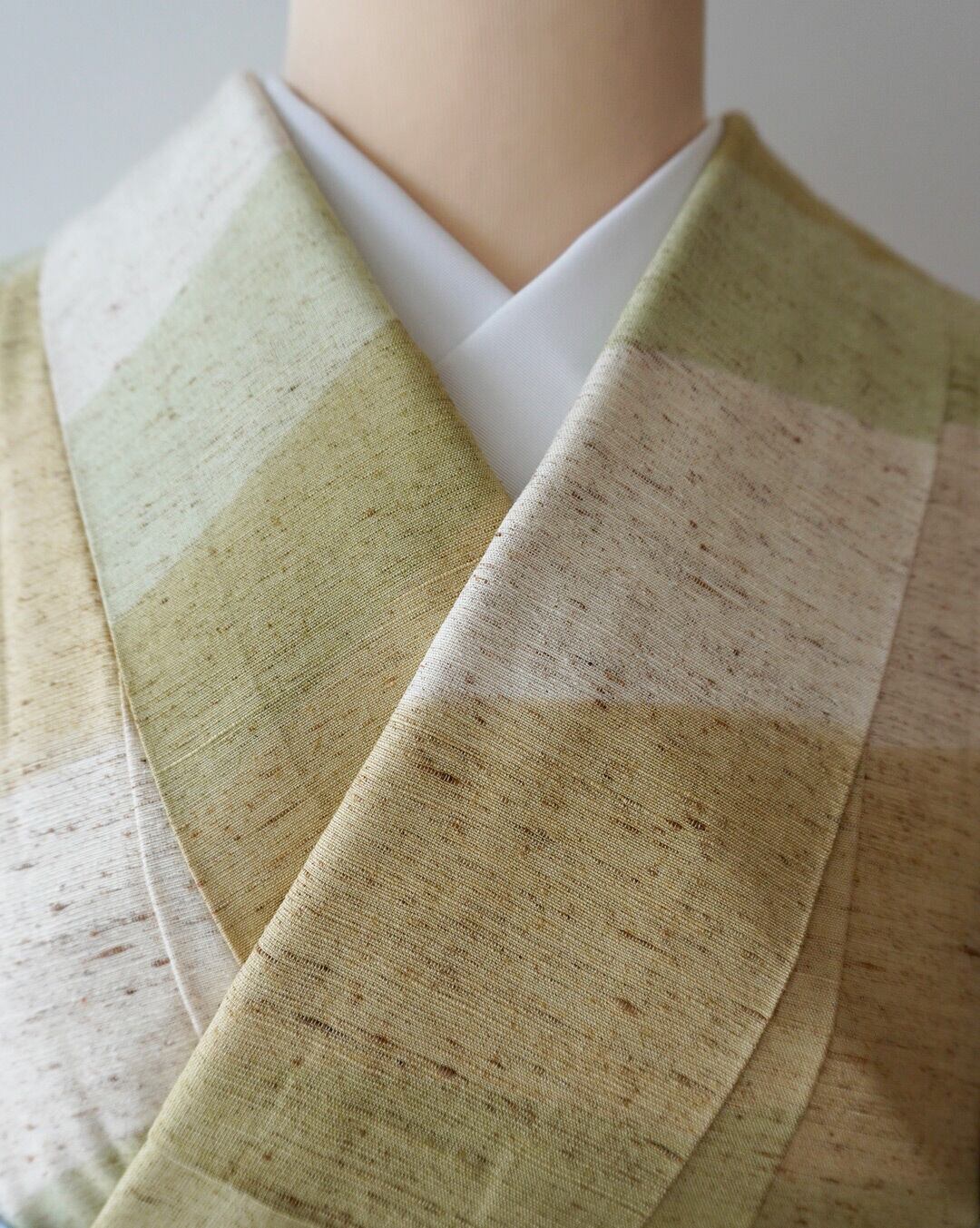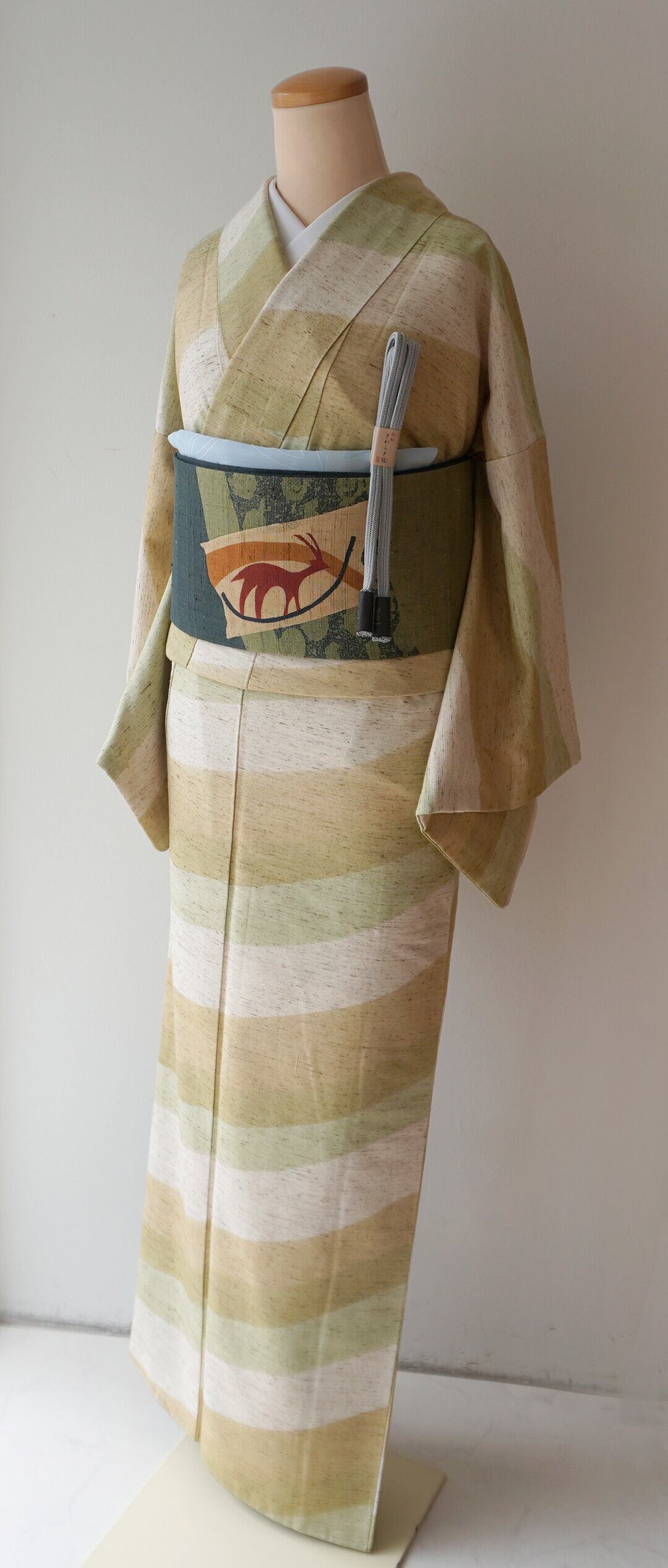 金茶色とが生紬の生成の色のなかに溶け込み、