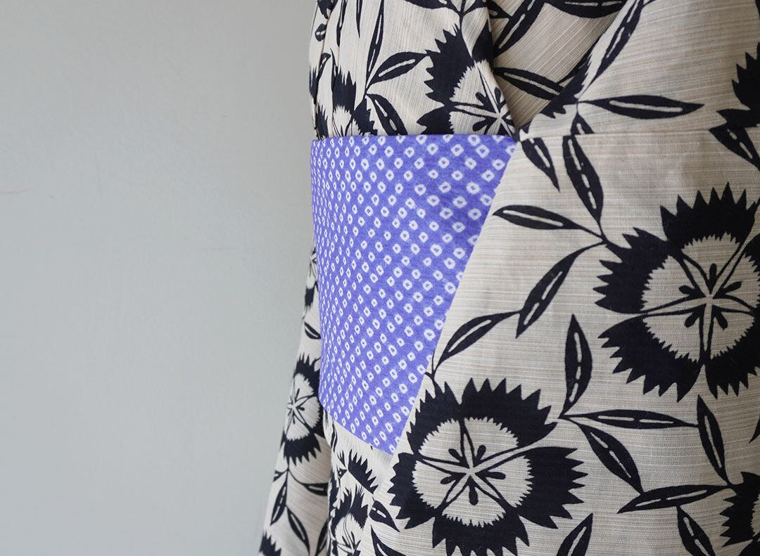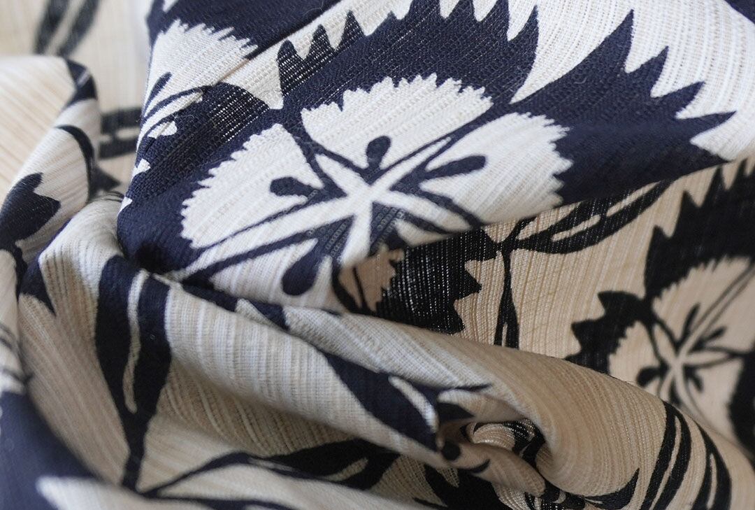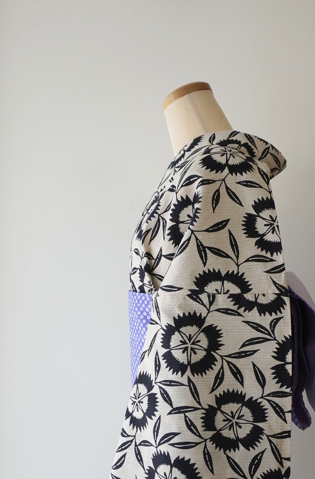 【浴衣】生成り色×黒色 撫子文 仕立て上がり浴衣