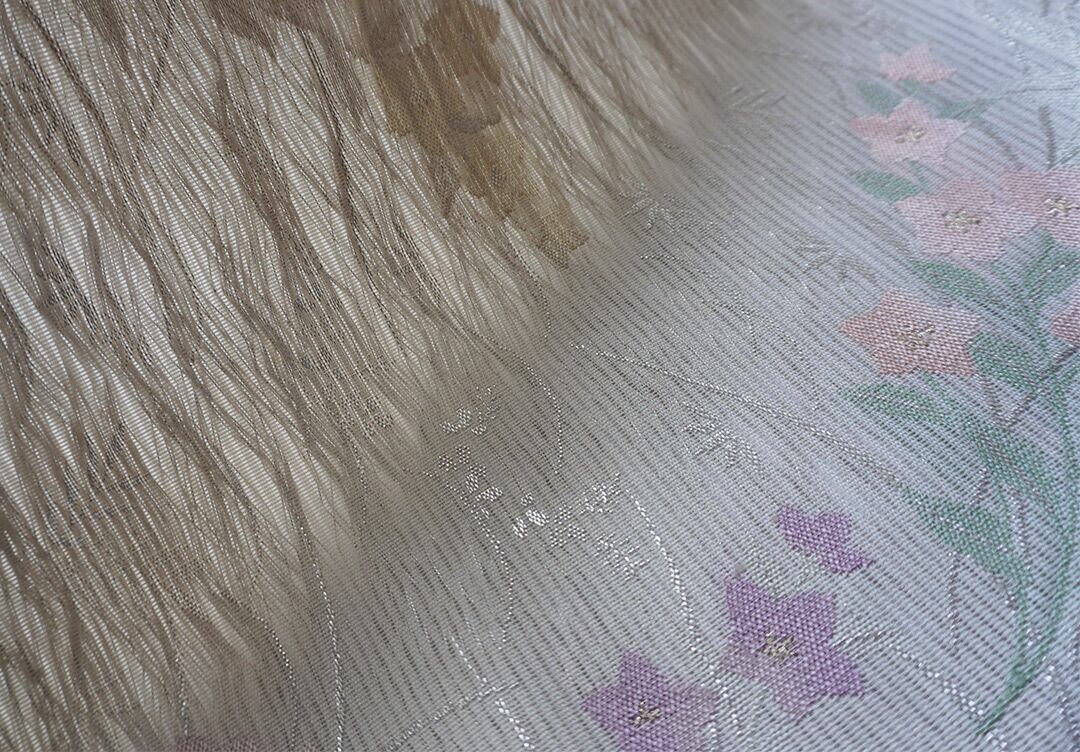 【夏ふくろ帯】胡粉色地 桔梗文 紗ふくろ帯
