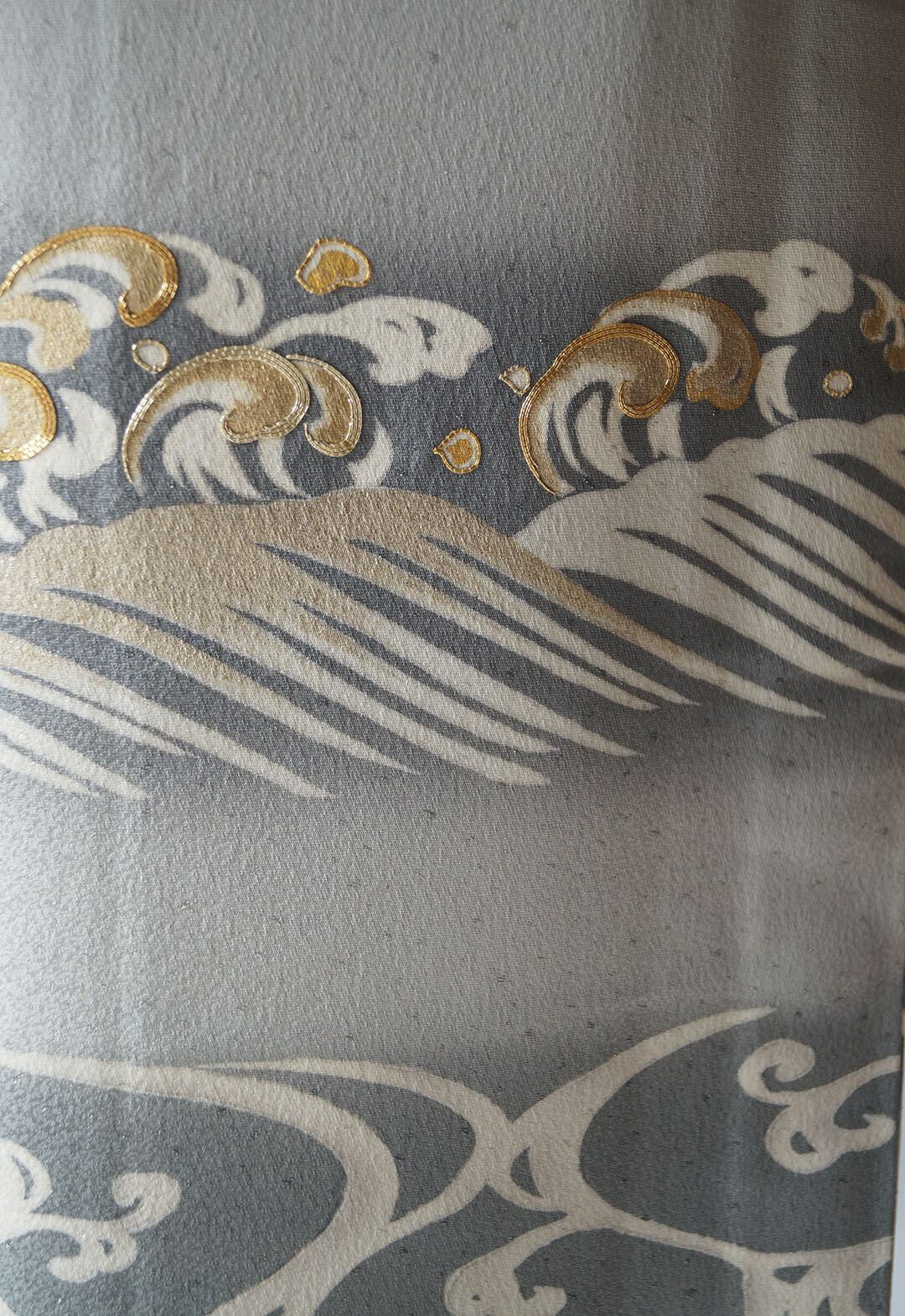 【単衣】グレー地 変わり地紋に波文 附下